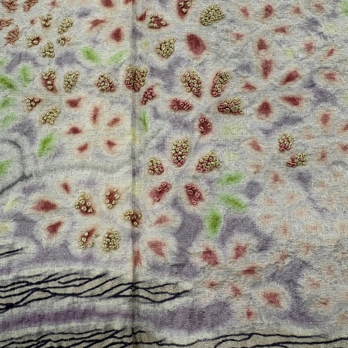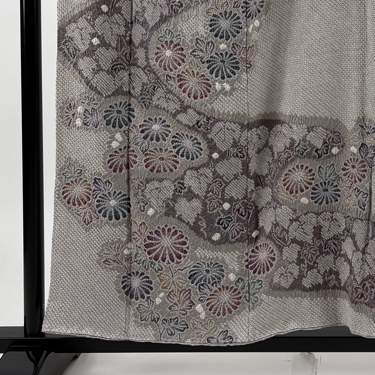 訪問着 身丈159.5cm 裄丈65cm M 袷 菊 萩 刺繍 絞り 黒 正絹 秀品