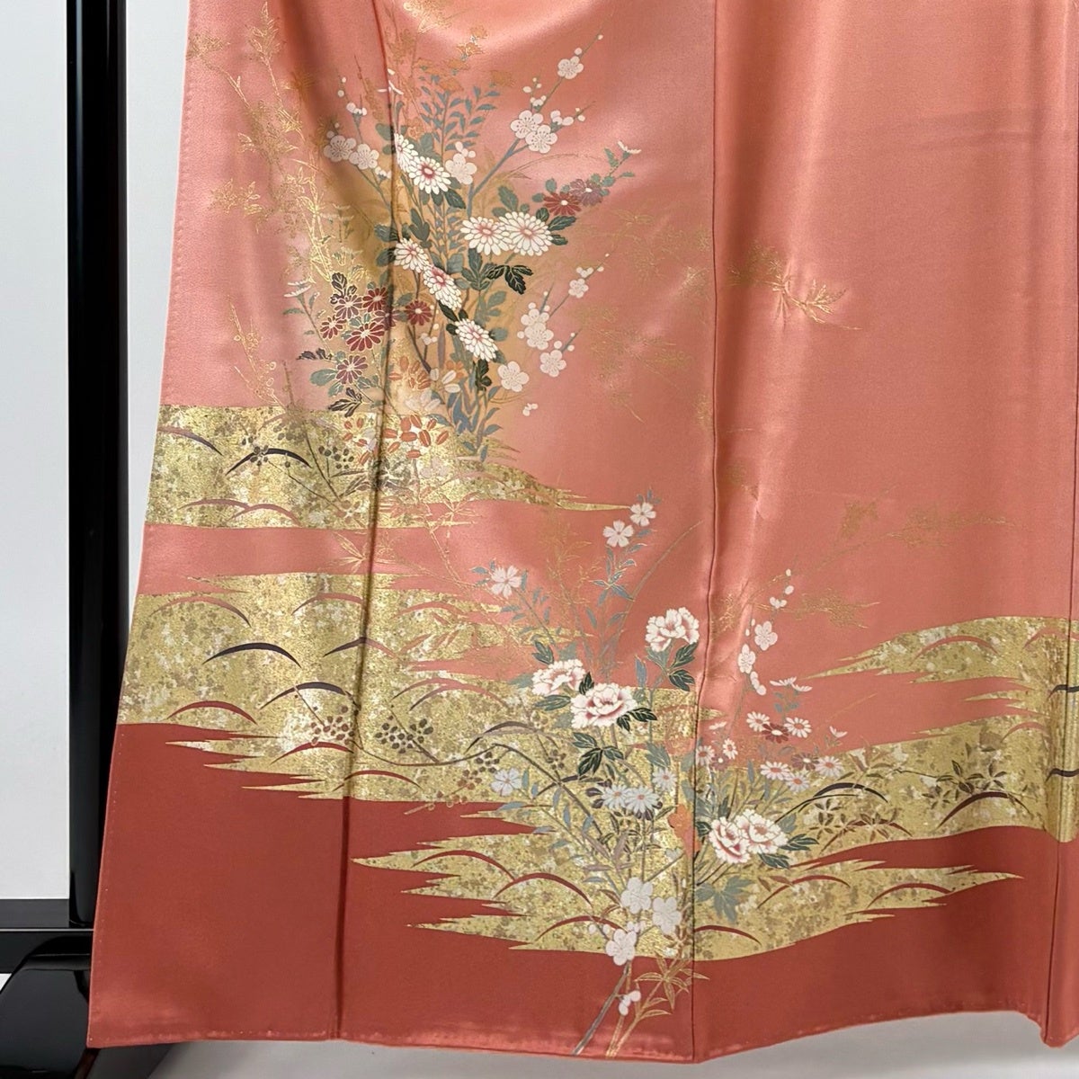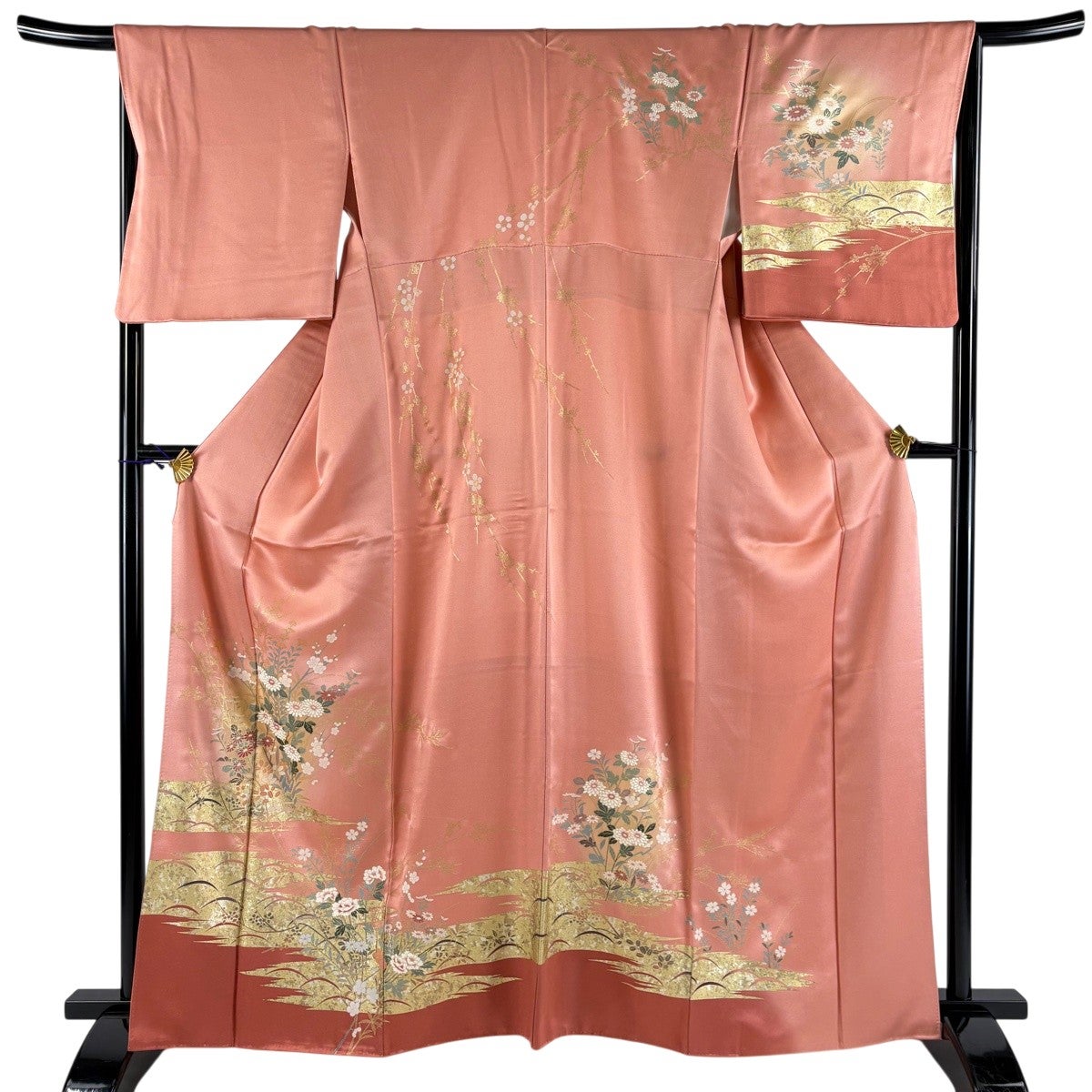 訪問着 身丈163cm 裄丈65cm M 袷 秋草 金糸 金彩 ピンク 正絹 秀品