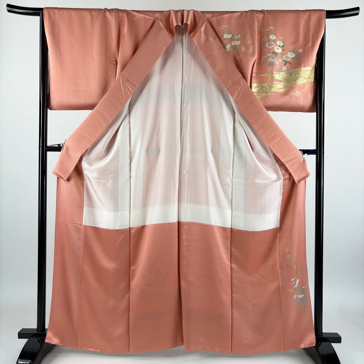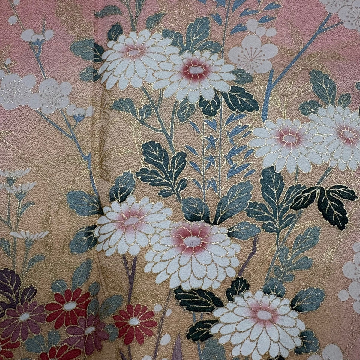 訪問着 身丈166cm 裄丈66cm M 袷 菊 鴛鴦 金糸 金彩 ピンク 正絹 秀品