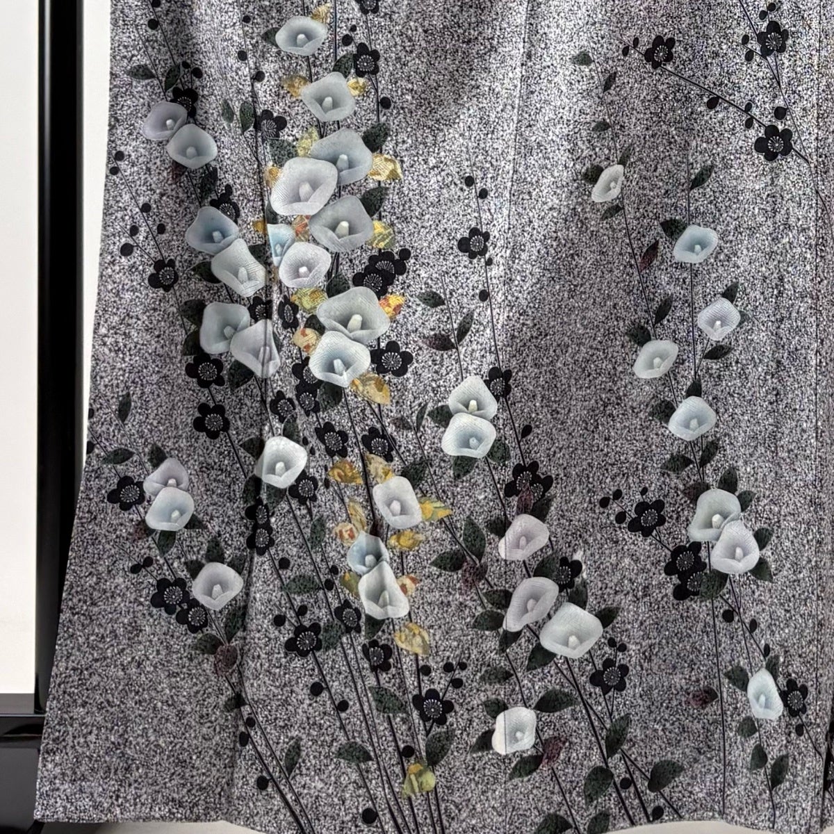 訪問着 身丈163cm 裄丈65cm M 袷 椿 霞 刺繍 絞り 灰色 正絹 秀品