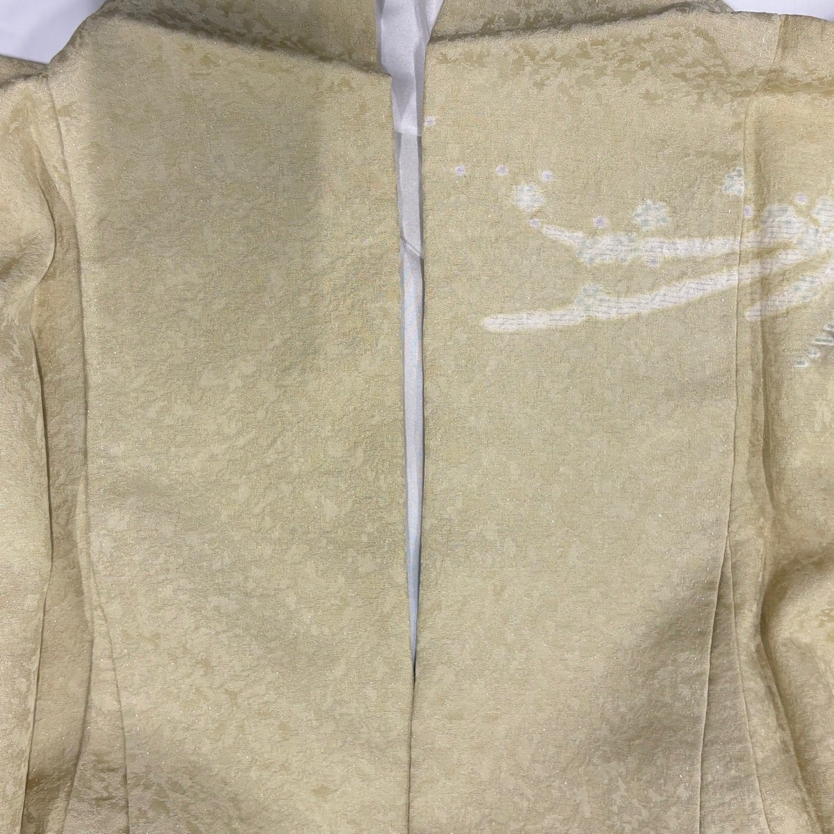 訪問着 身丈171cm 裄丈72cm L 袷 草花 銀通し 絞り 薄黄 正絹 逸品