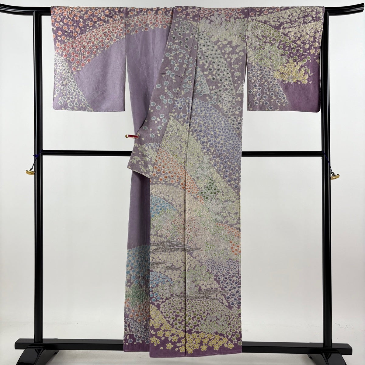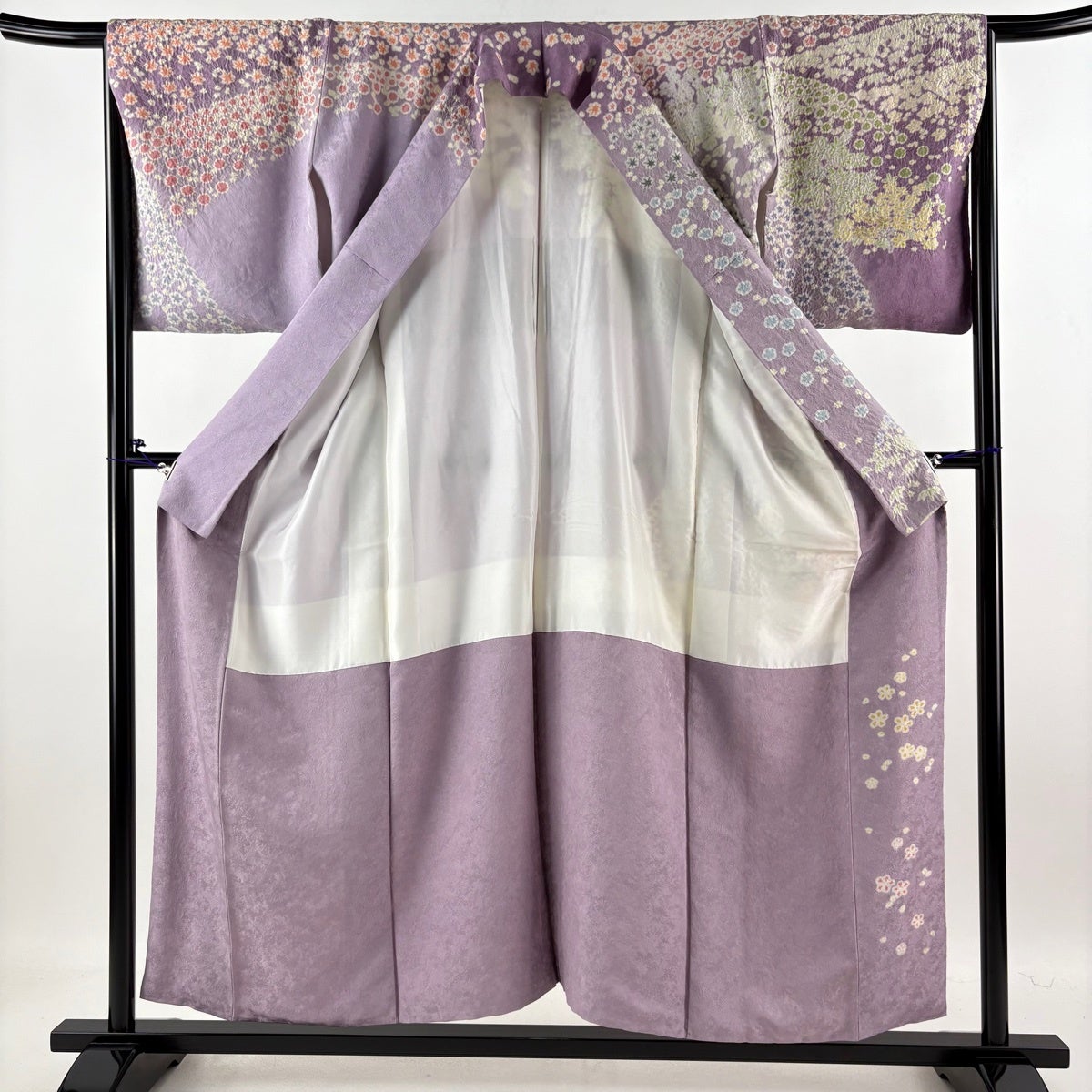 訪問着 身丈159cm 裄丈65cm M 袷 桜 鬘帯 金糸 金彩 薄紫 正絹 秀品