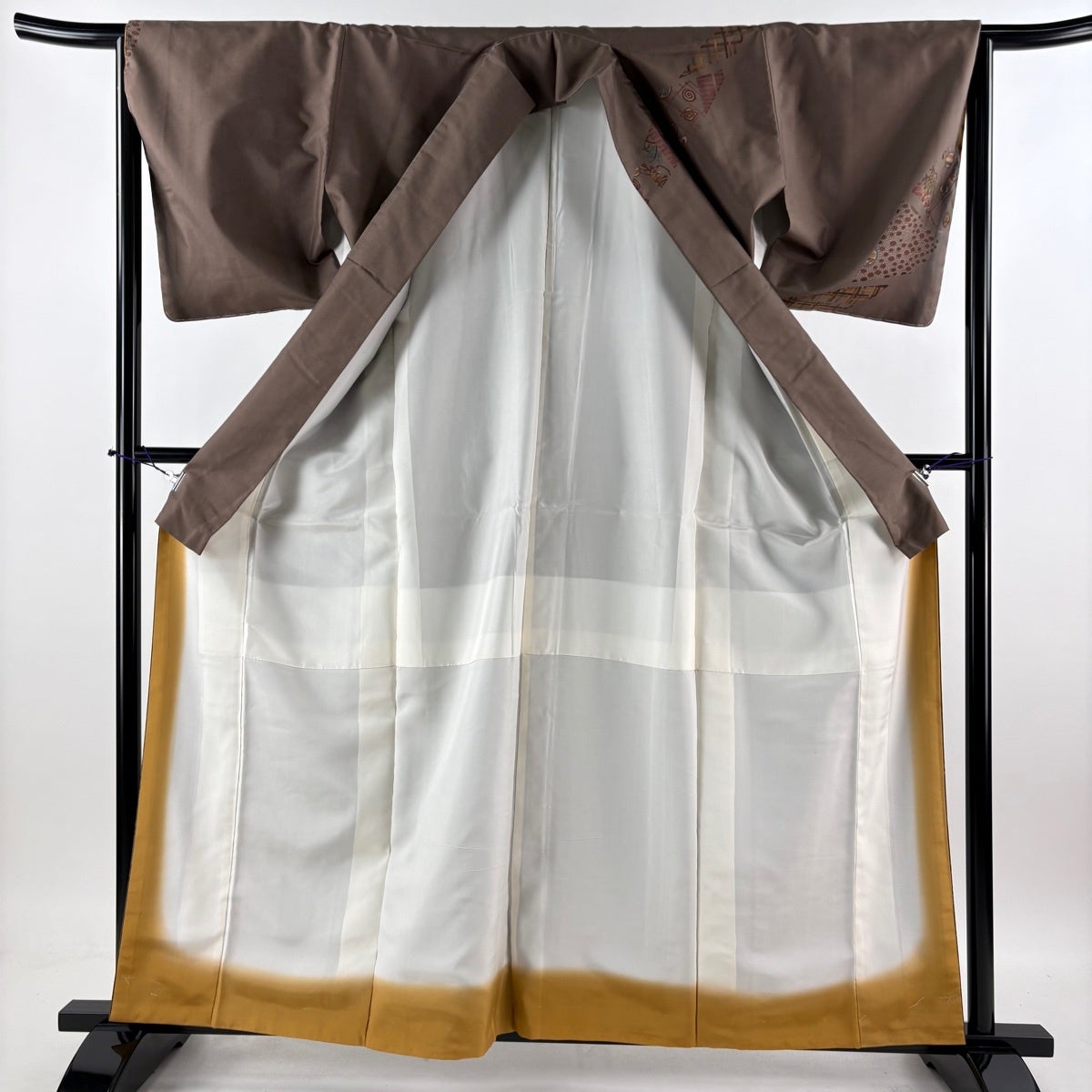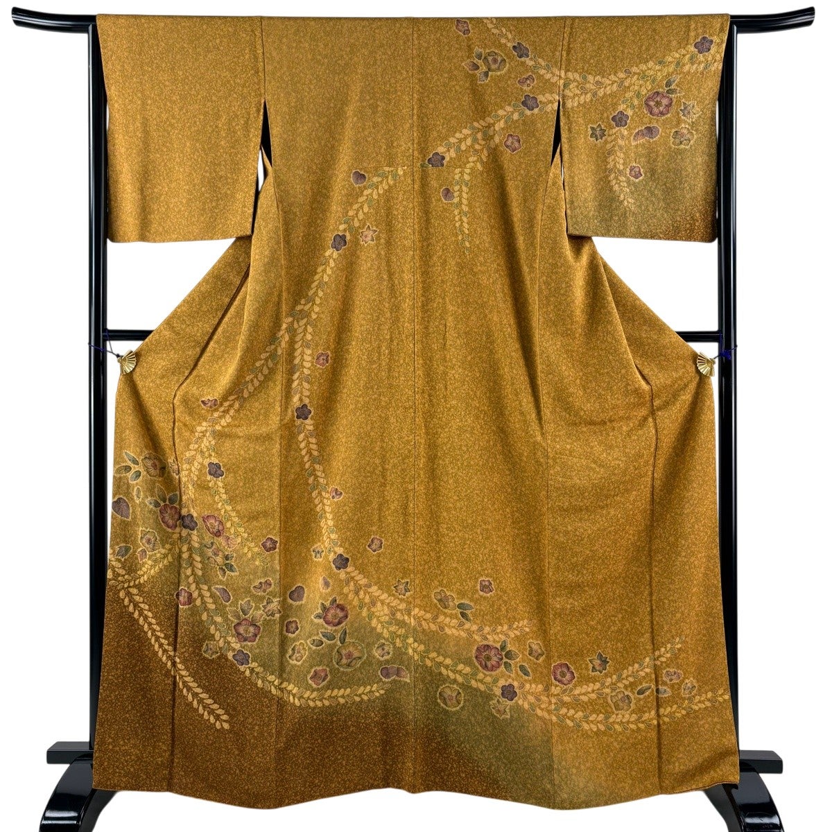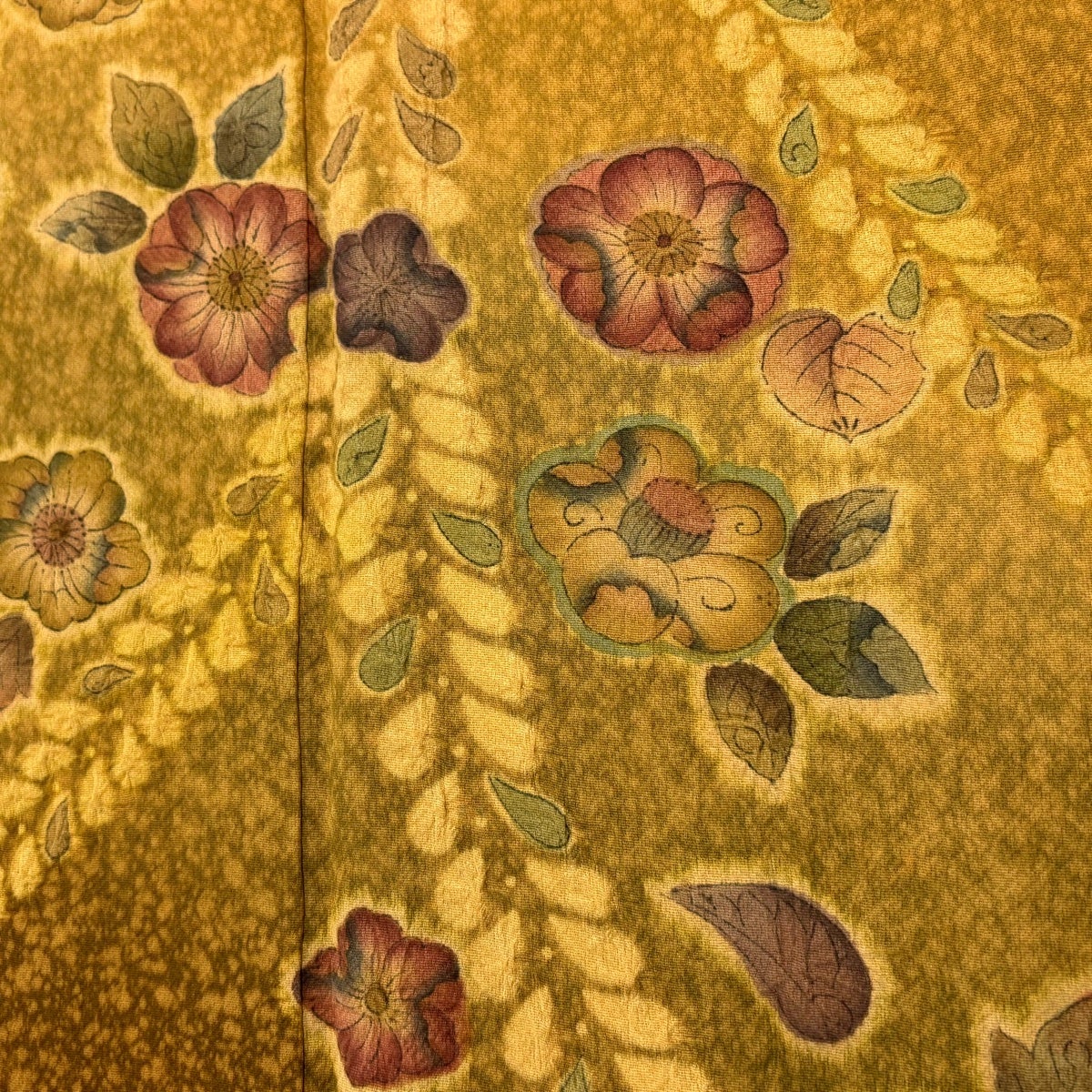 訪問着 身丈166cm 裄丈65cm M 袷 辻が花 ぼかし 山吹茶色 正絹 名品