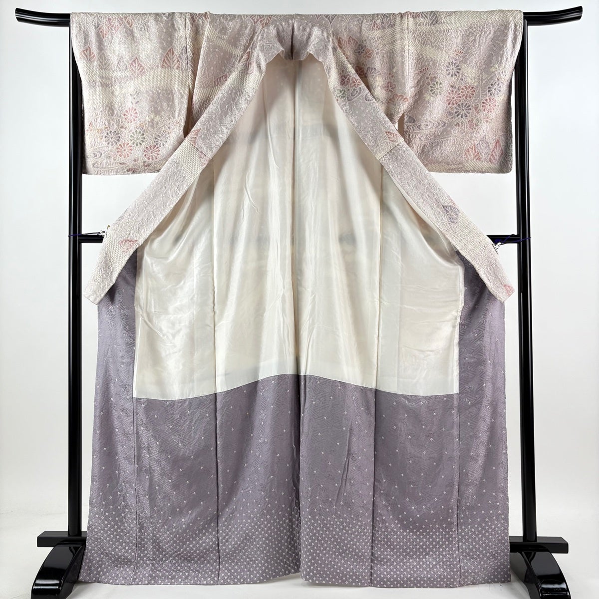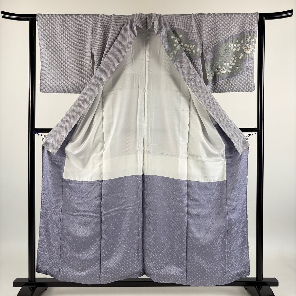 訪問着 身丈156cm 裄丈63cm S 袷 草花 青海波 絞り 灰紫 正絹 秀品