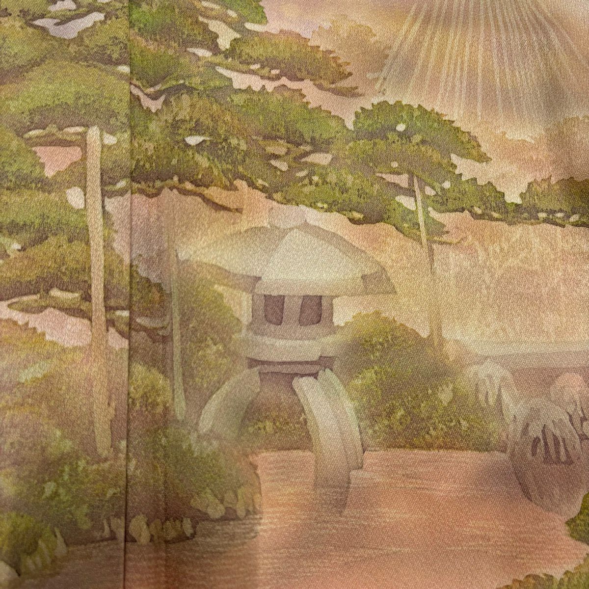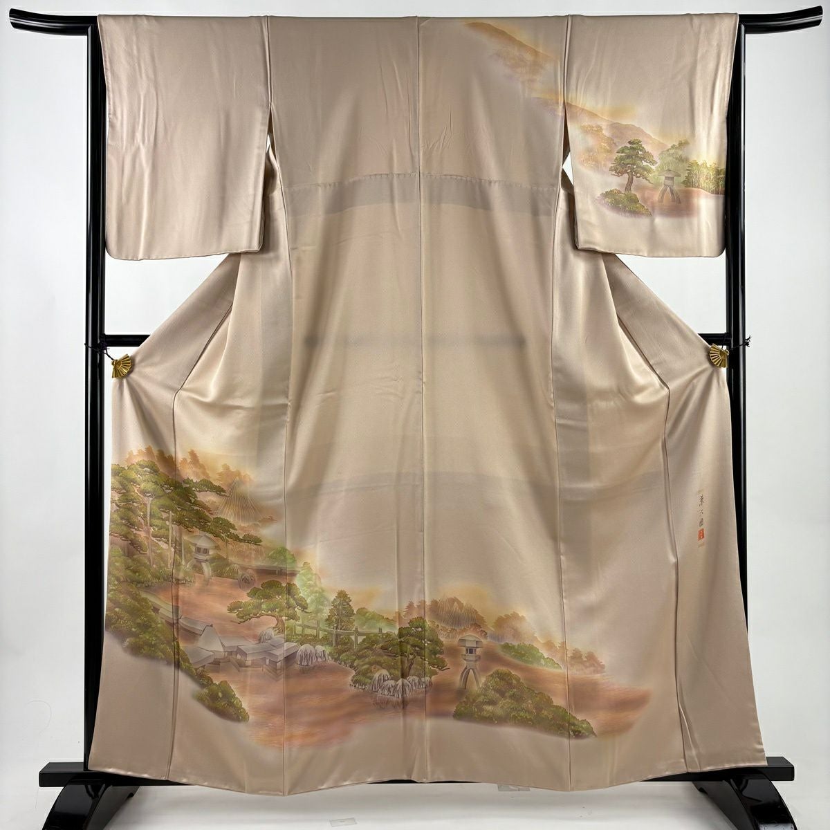 訪問着 身丈161.5cm 裄丈65cm M 袷 落款あり 兼六園 ぼかし ベージュ 正絹 秀品