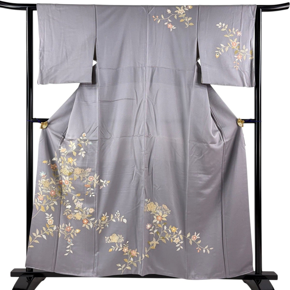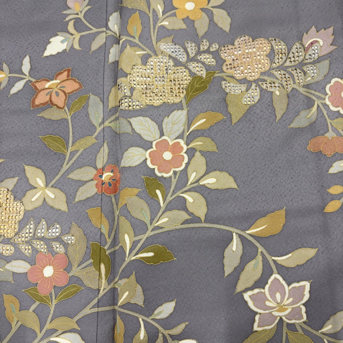 訪問着 身丈158cm 裄丈62cm S 袷 枝花 刺繍 箔 薄紫 正絹 秀品