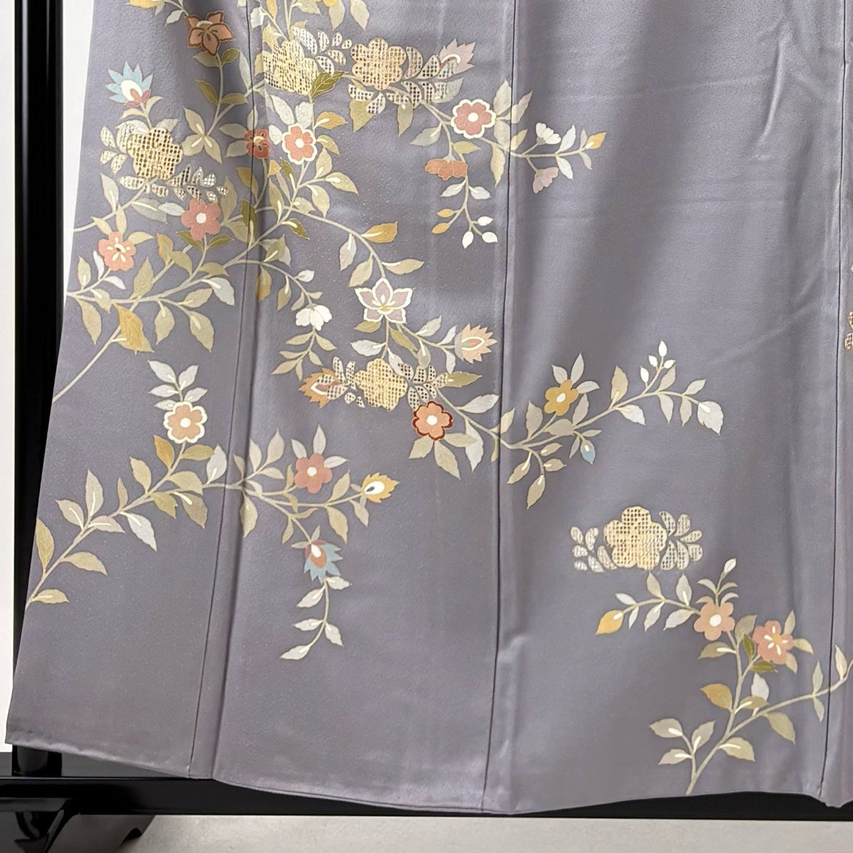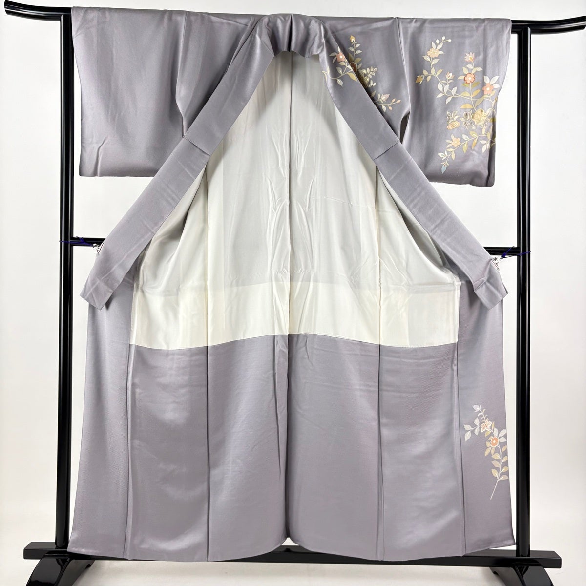 訪問着 身丈161cm 裄丈63cm S 袷 落款あり 草花 灰紫 正絹 名品
