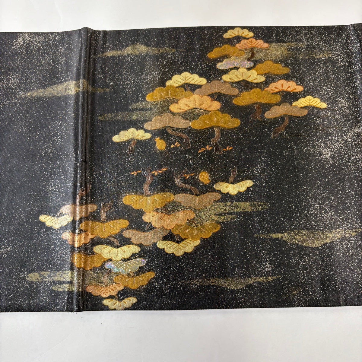 袋帯 秀品 桜 流水 唐織 箔 黒灰 六通 正絹