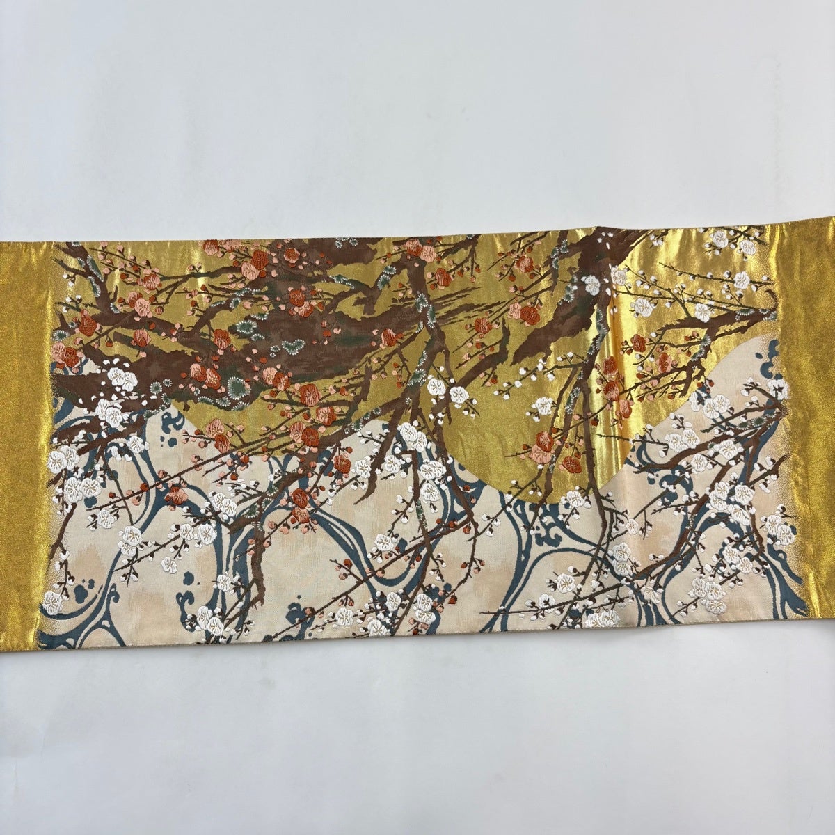 袋帯 秀品 梅 流水 箔 金糸 銀色 六通 正絹