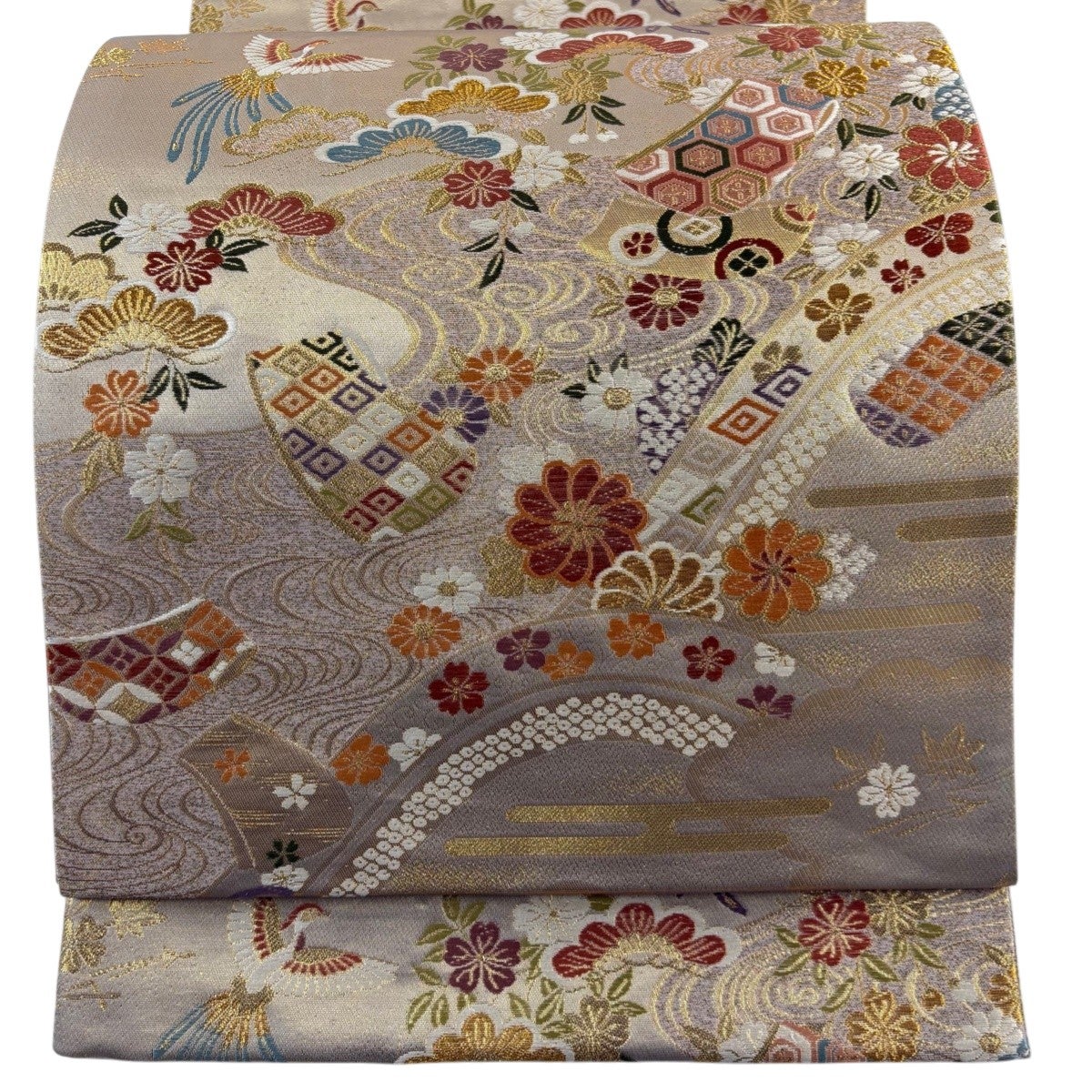 袋帯 名品 舟 束ね熨斗 箔 金糸 金色 全通 正絹
