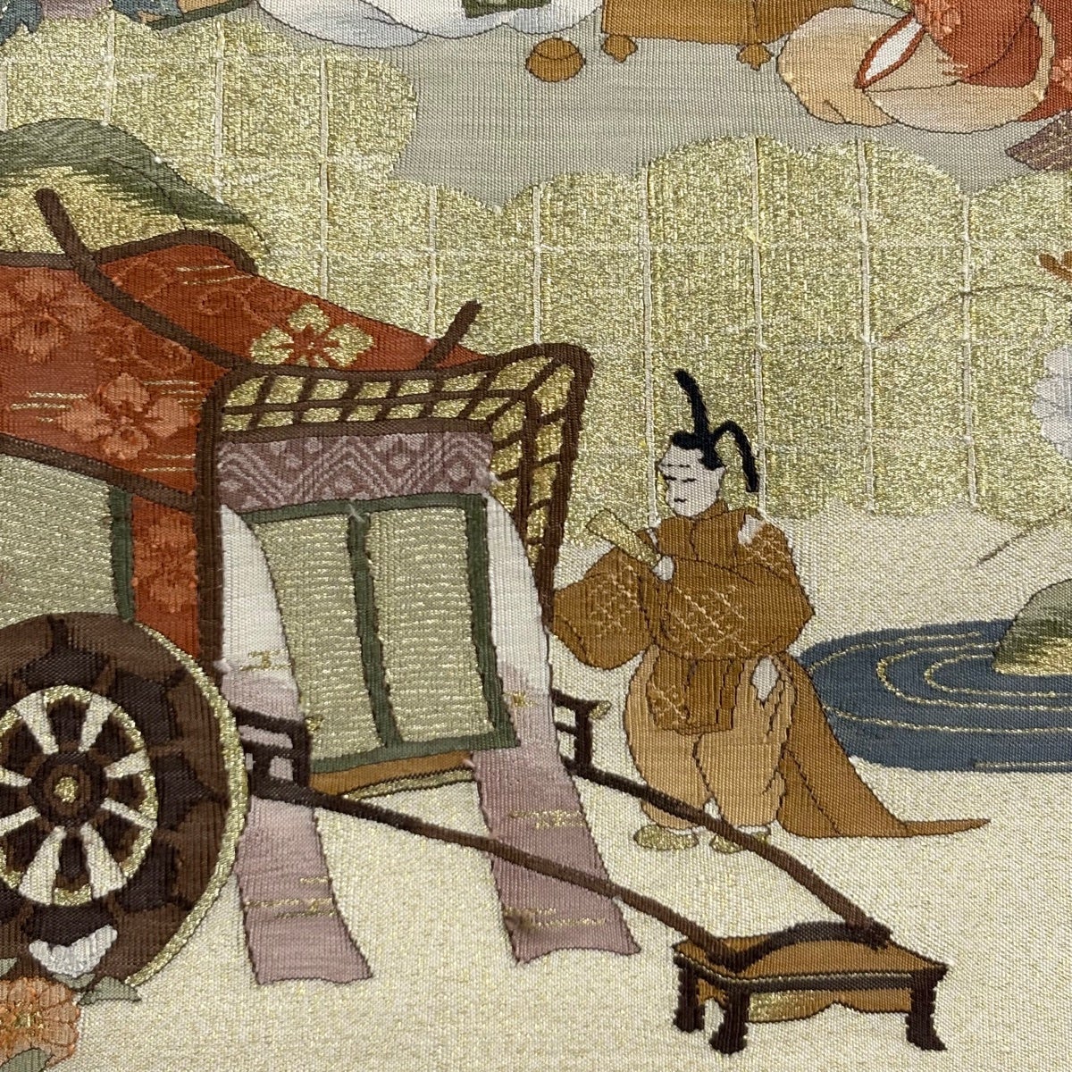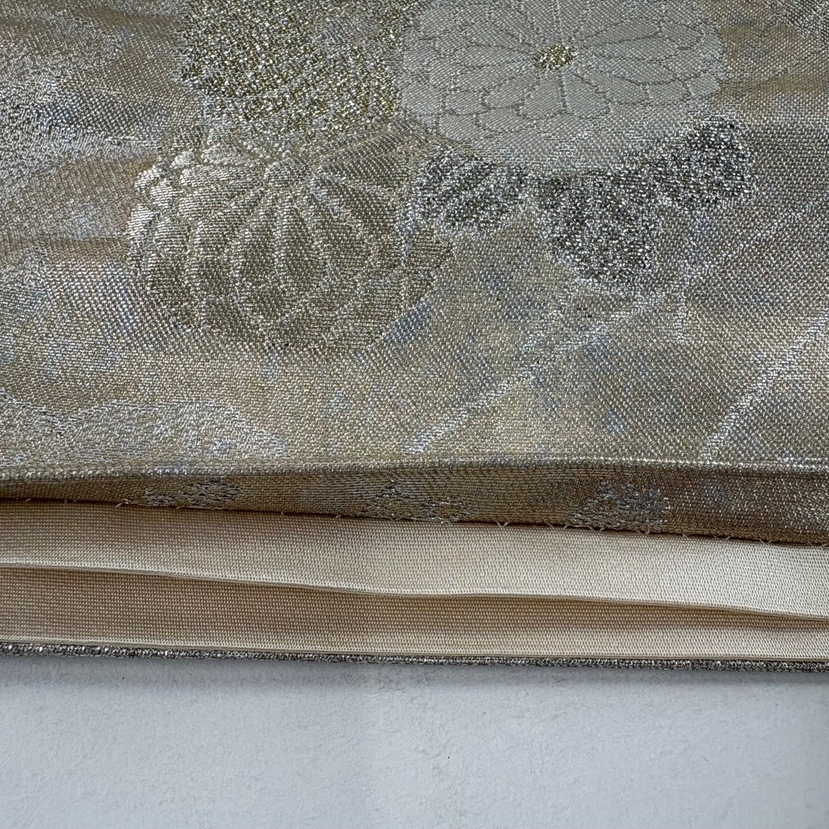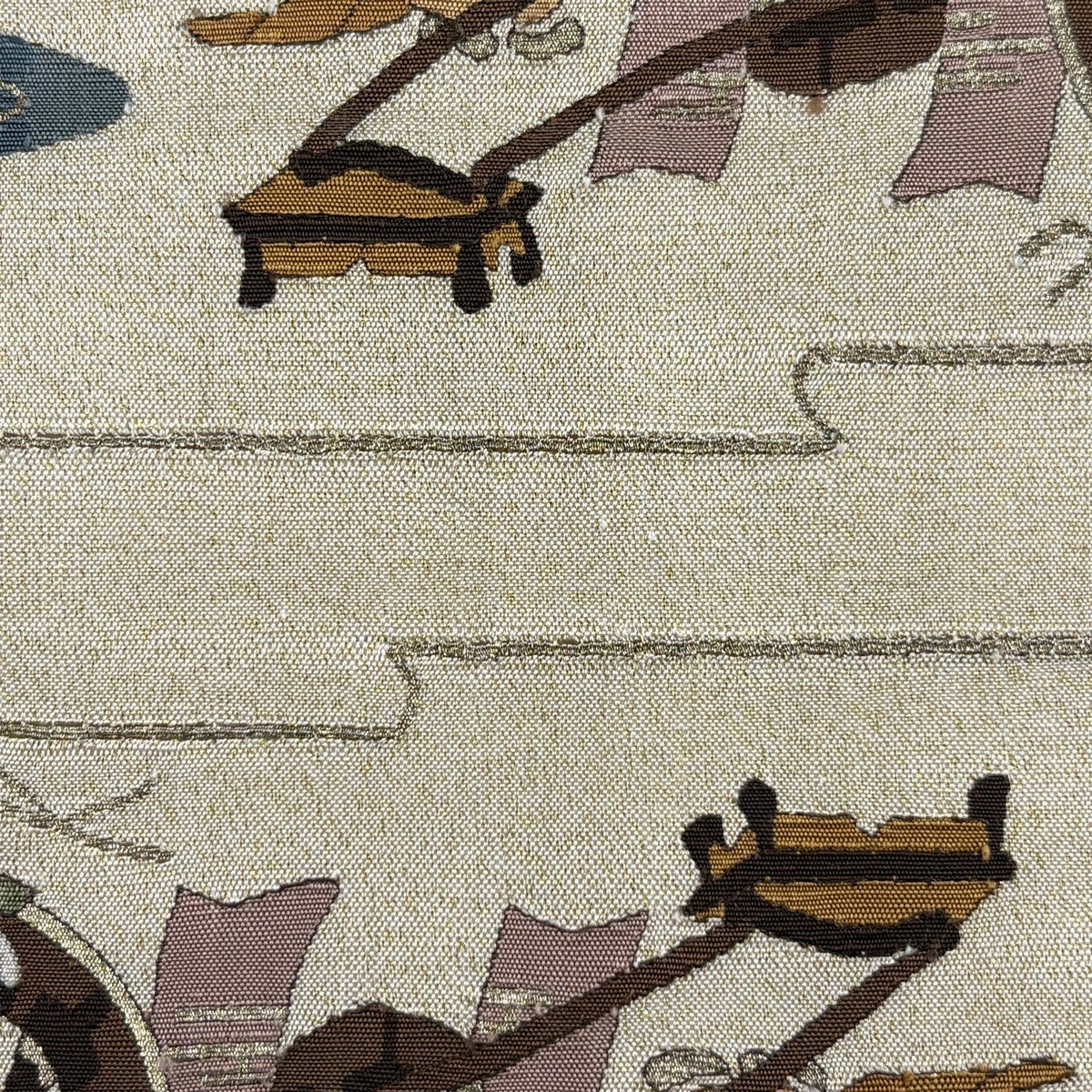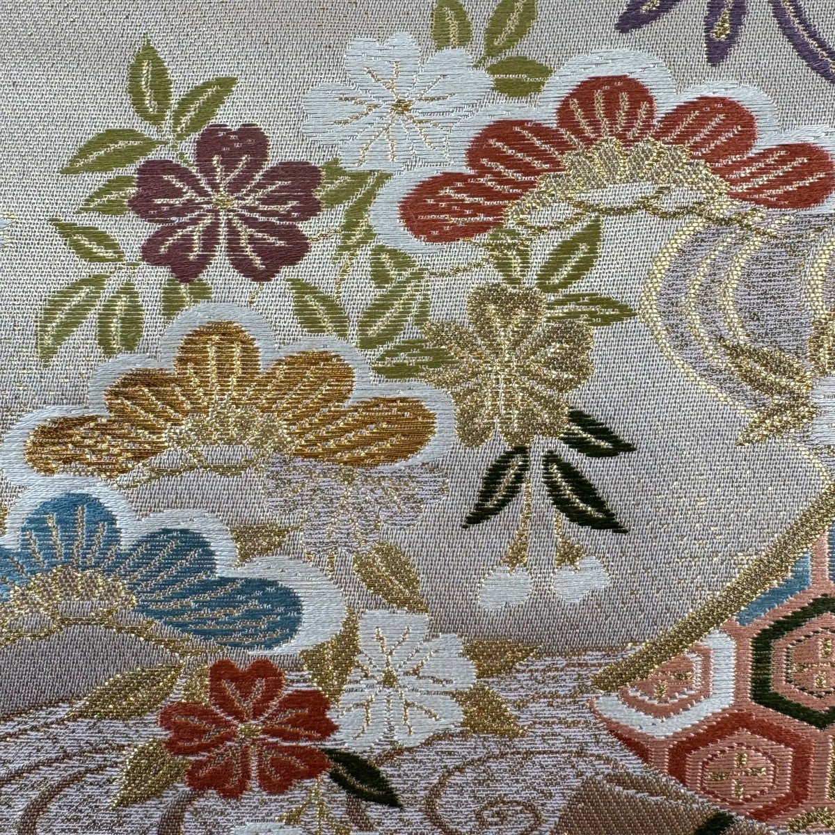 袋帯 名品 几帳 草花 唐織 箔 クリーム 六通 正絹