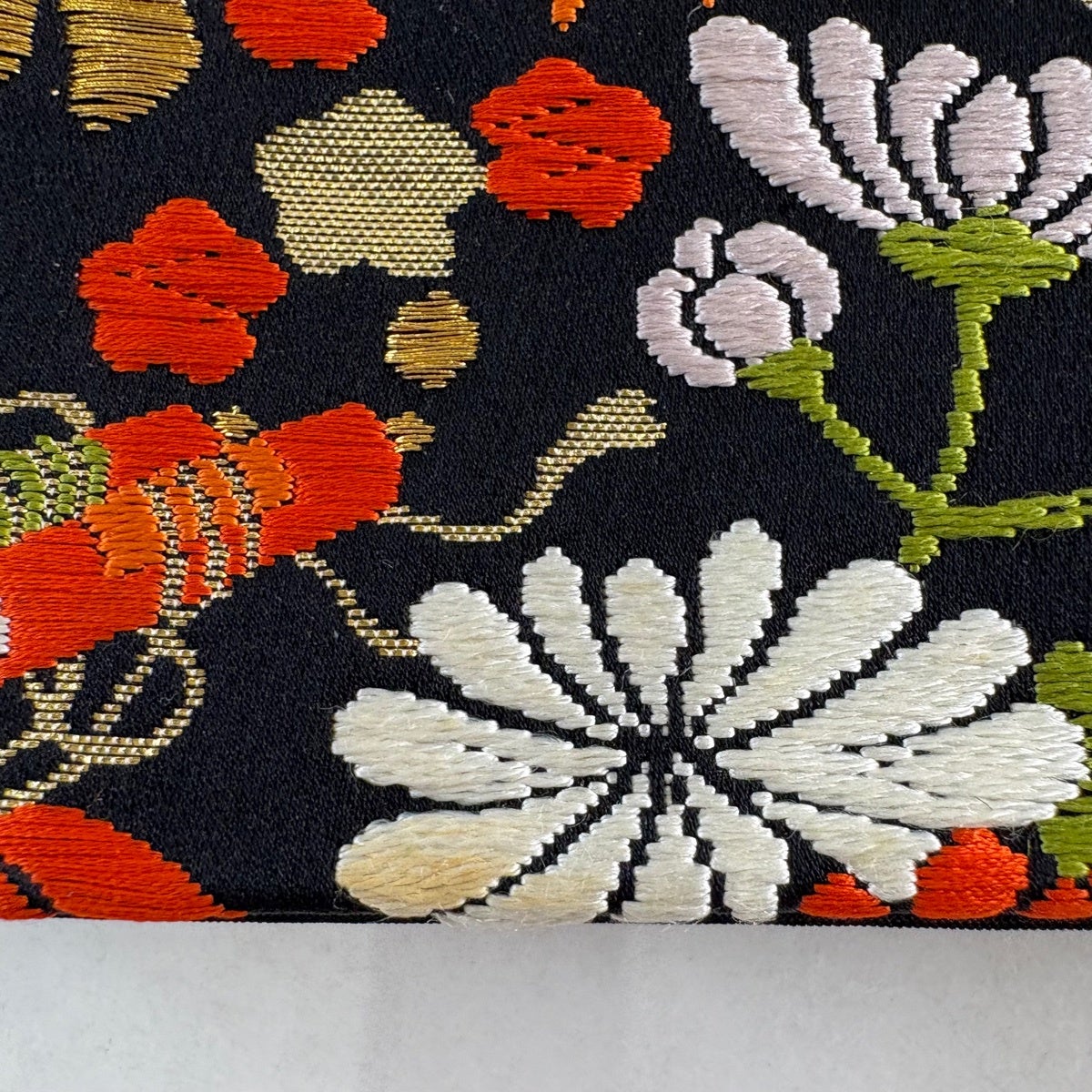 【美品】 袋帯 逸品 じゅらく 落款あり じゅらく帝王紫 扇面 牡丹 刺繍 箔 黒 お太鼓柄 正絹