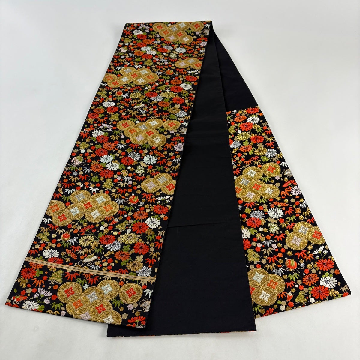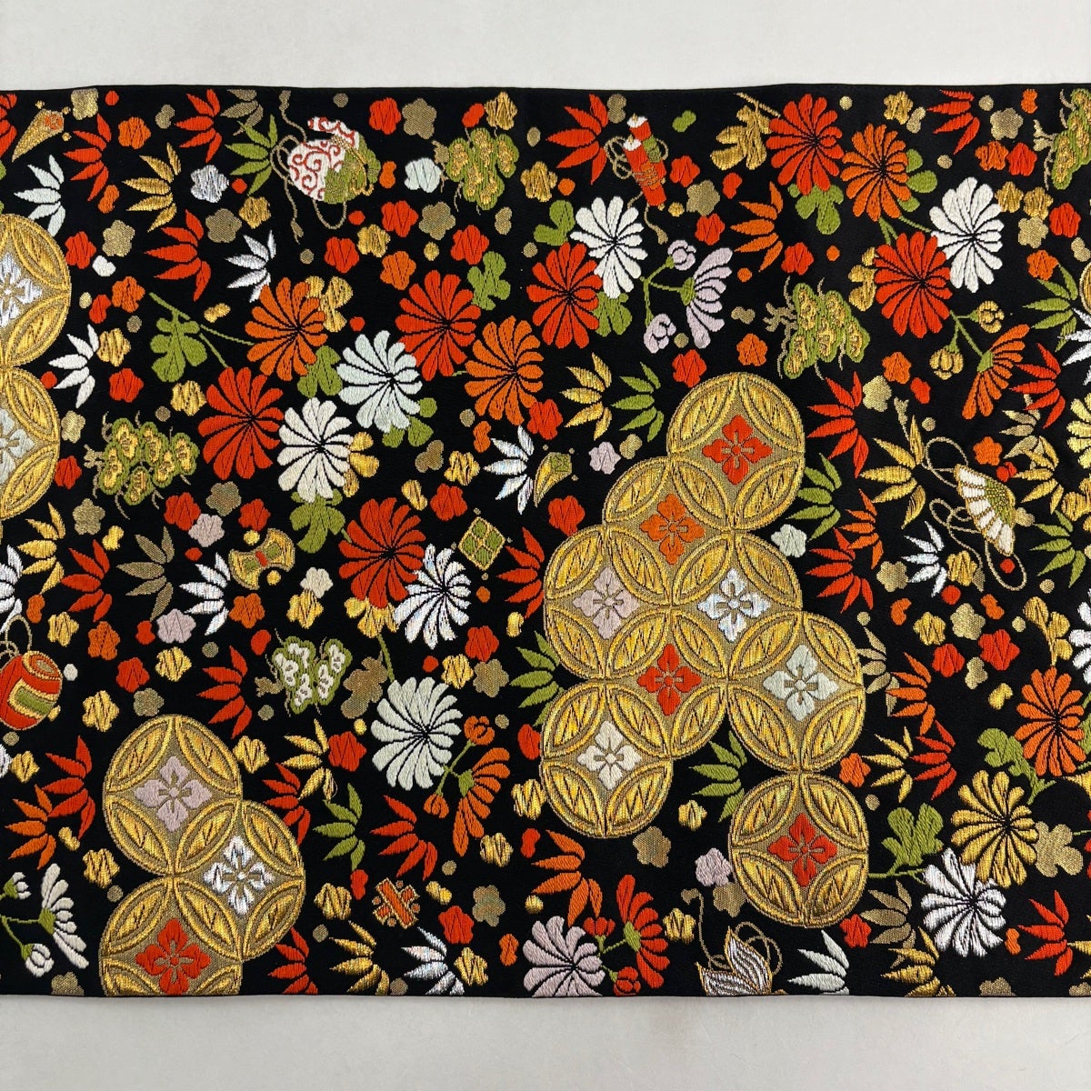 袋帯 名品 落款あり 本家加納 七宝文 宝尽くし 金銀糸 唐織 黒 六通 正絹