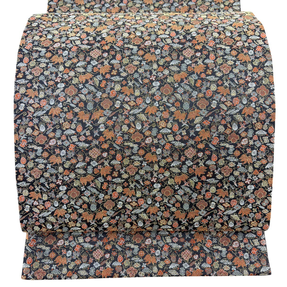 【美品】 袋帯 名品 洛陽織物 証紙あり 宝尽くし 箔 黒 全通 正絹