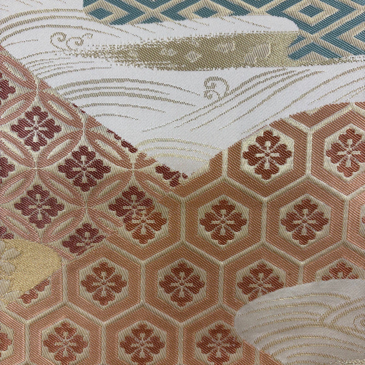 袋帯 秀品 川島織物 落款あり 笠松 桜 金銀糸 箔 ベージュ 六通 正絹
