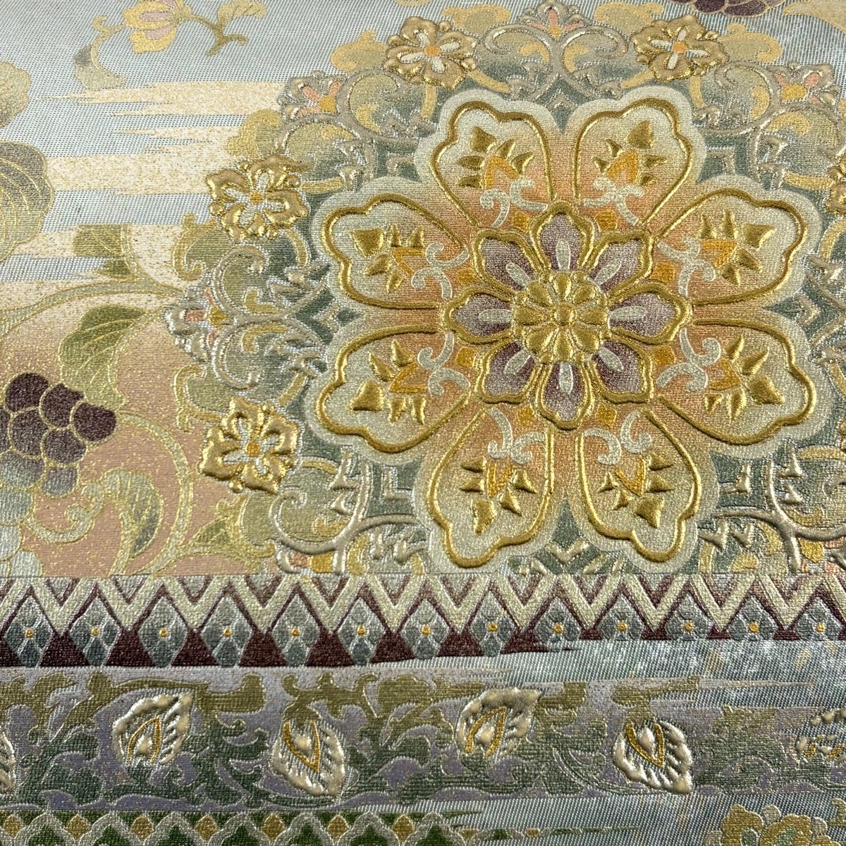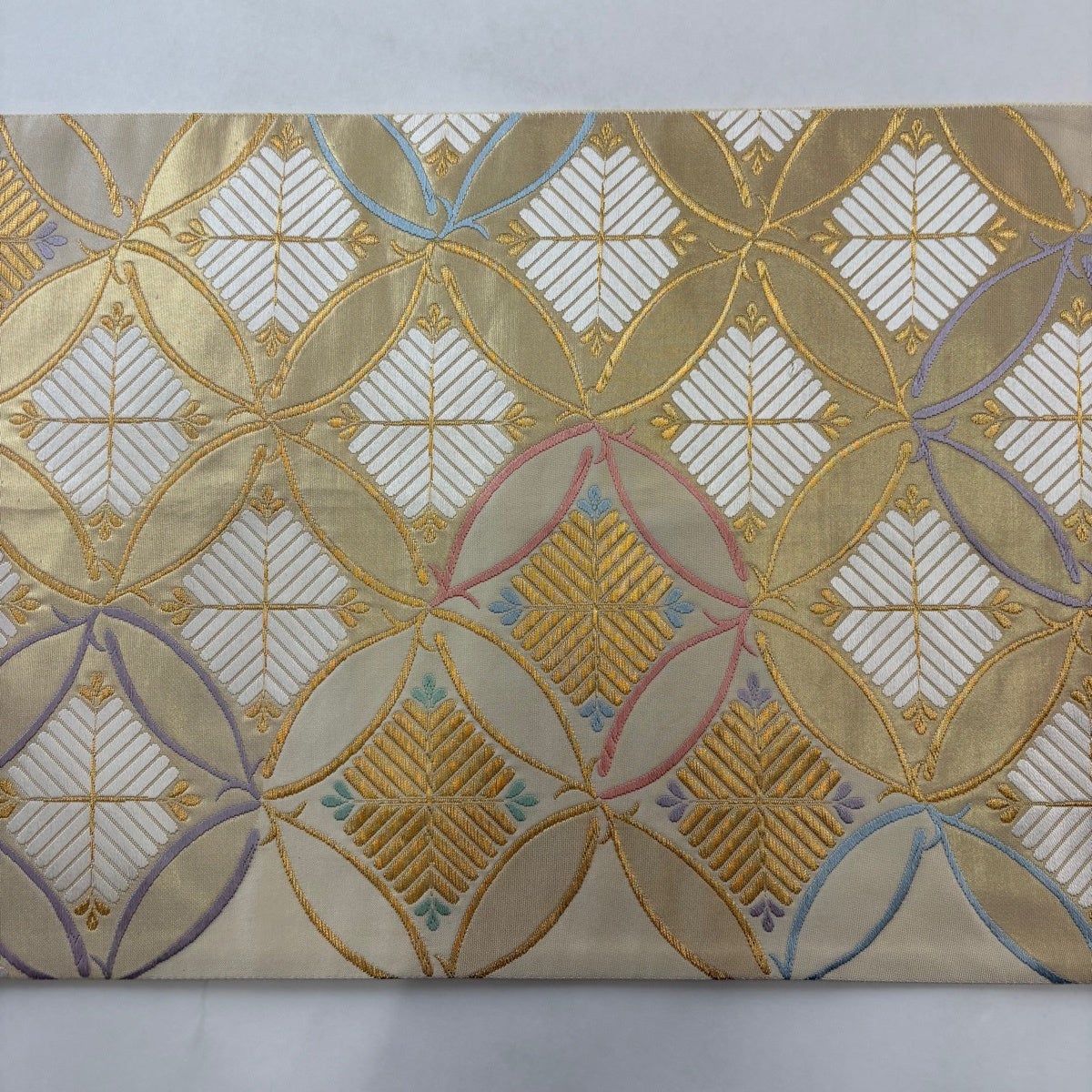 袋帯 秀品 七宝文 若松 金糸 箔 ベージュ 六通 正絹