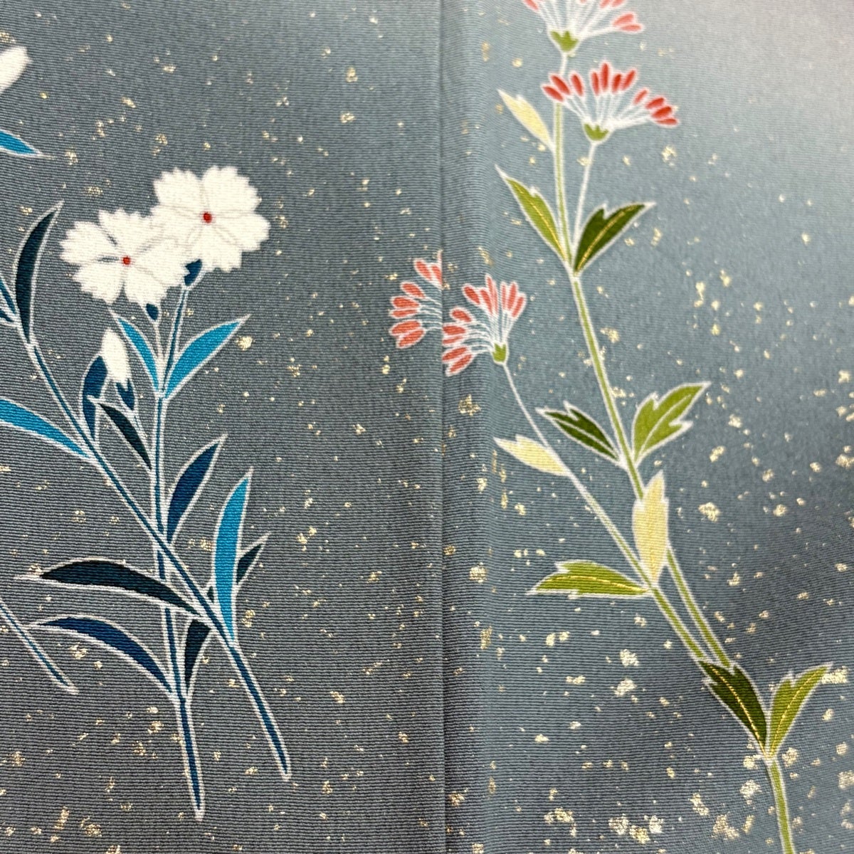 訪問着 身丈161cm 裄丈65cm M 袷 枝花 草花 染め分け ぼかし 灰色 正絹 秀品