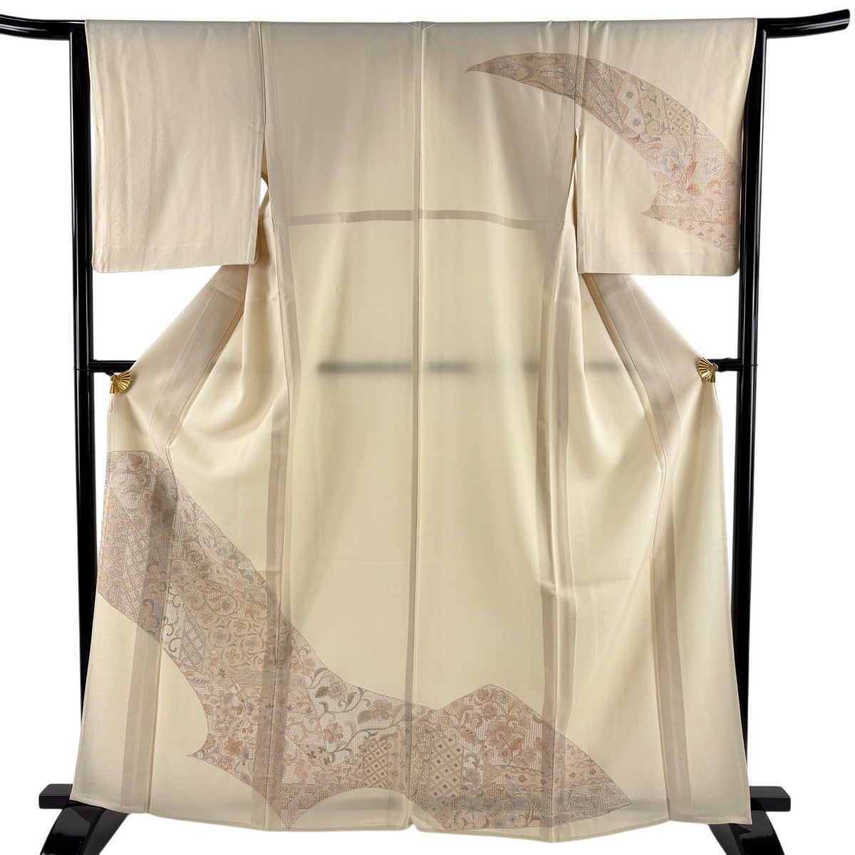 訪問着 身丈152.5cm 裄丈63.5cm S 袷 草花 金彩 染め分け ベージュ 正絹 秀品