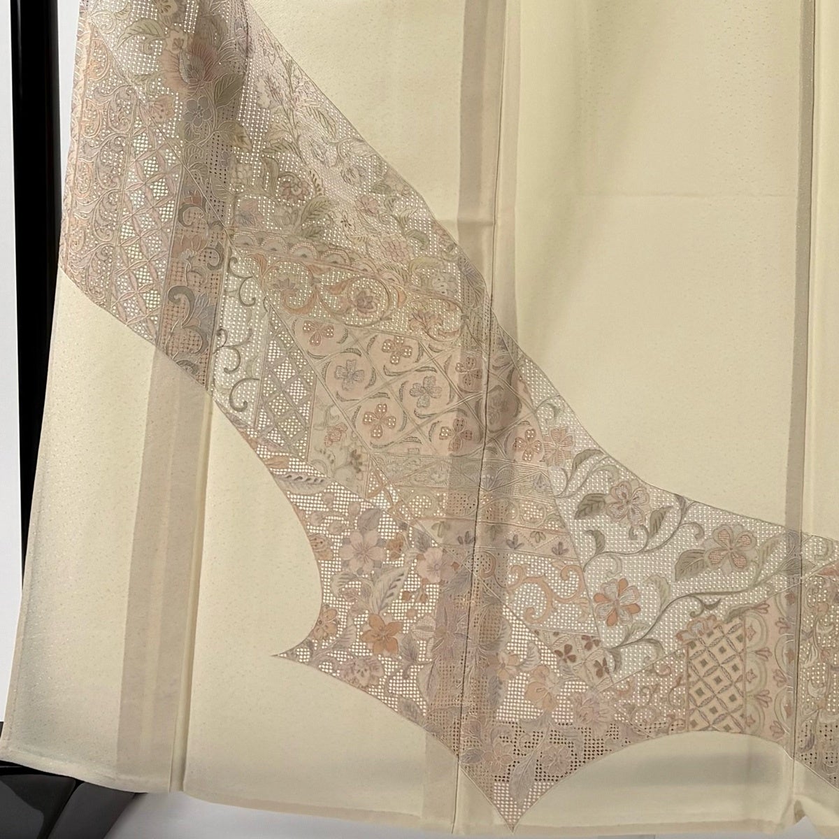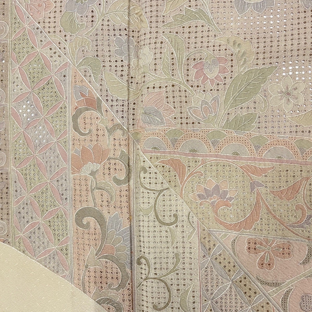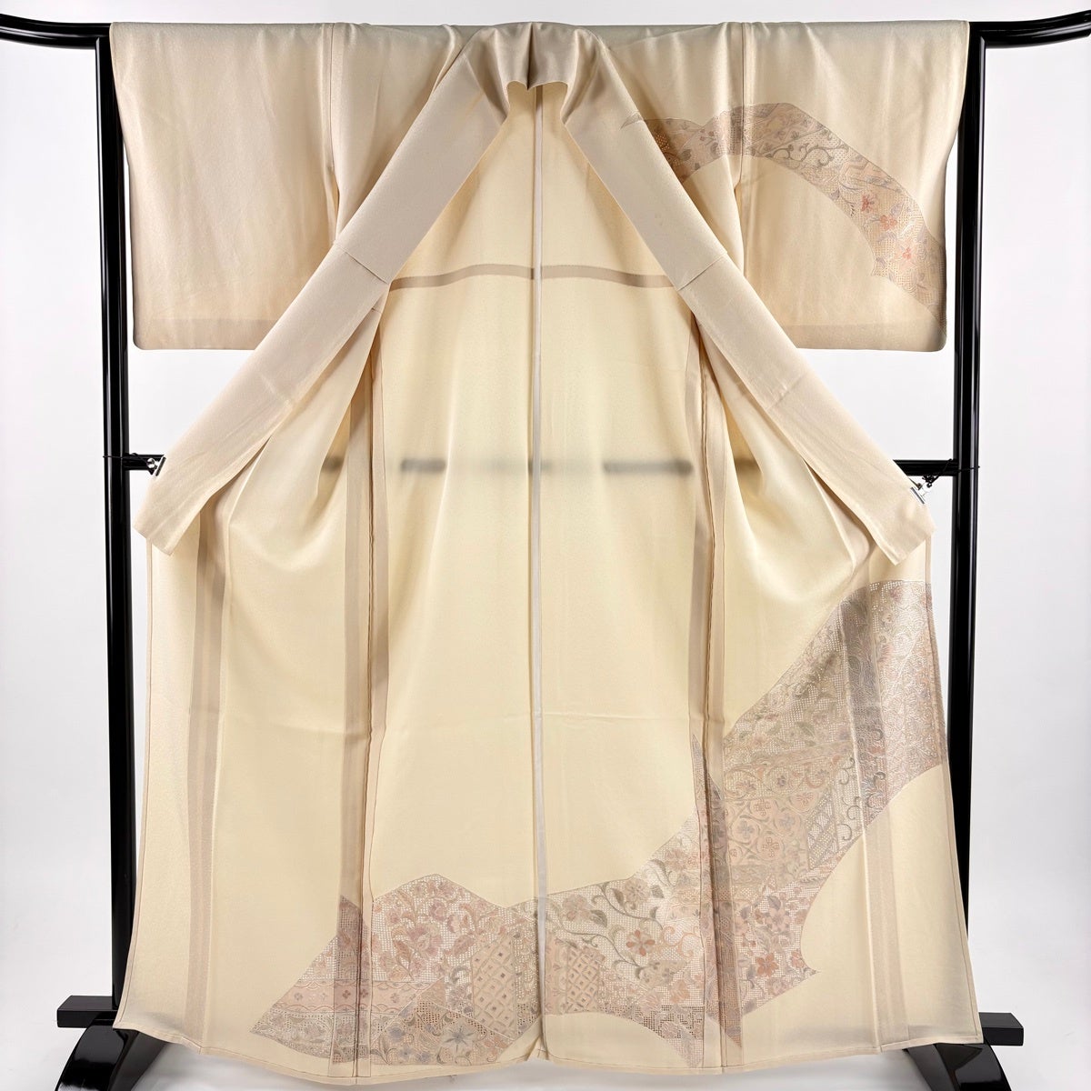 訪問着 身丈163.5cm 裄丈64cm M 単衣 花唐草 草花 刺繍 ベージュ 正絹 秀品