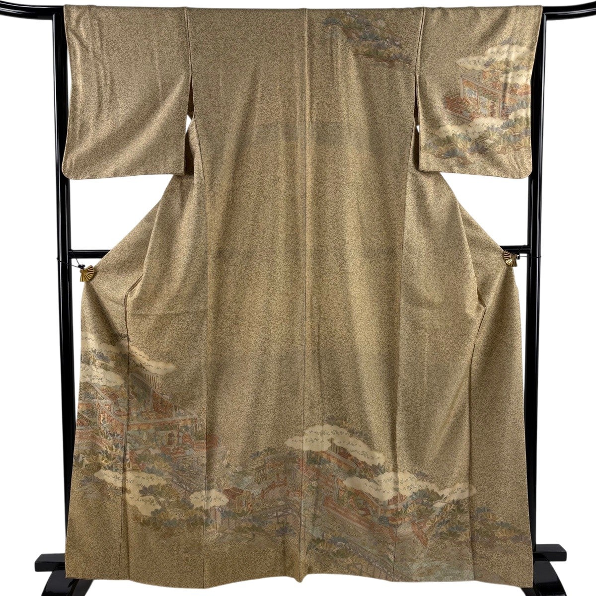 訪問着 身丈161cm 裄丈64.5cm M 袷 落款あり 家屋 松竹梅 金彩 灰紫 正絹 秀品