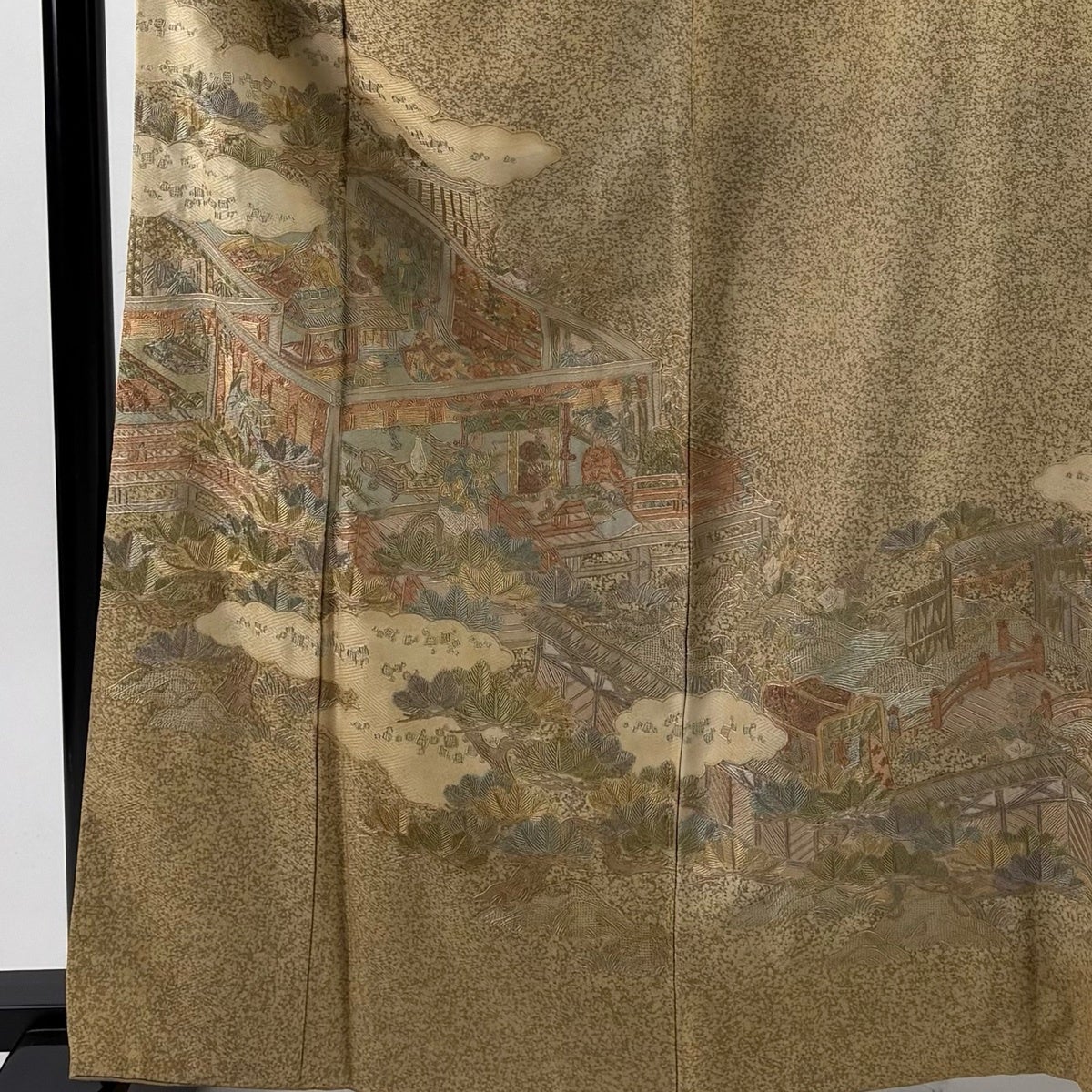 訪問着 身丈153cm 裄丈62.5cm S 袷 建物 松竹梅 金糸 ぼかし 青灰色 正絹 名品