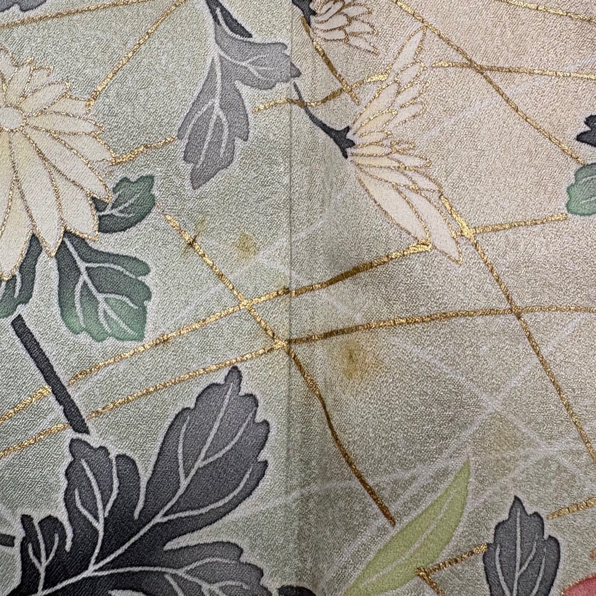 訪問着 身丈161cm 裄丈65.5cm M 袷 落款あり 菊 萩 金糸 金銀彩 薄緑 正絹 逸品