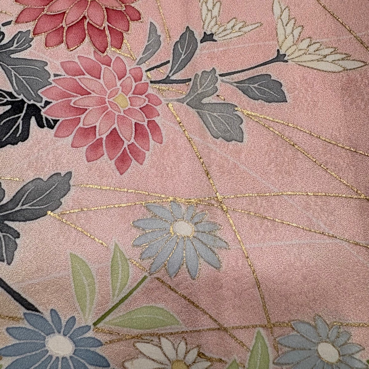 【美品】 訪問着 身丈166cm 裄丈64cm M 袷 菊 萩 金彩 サーモンピンク 正絹 名品