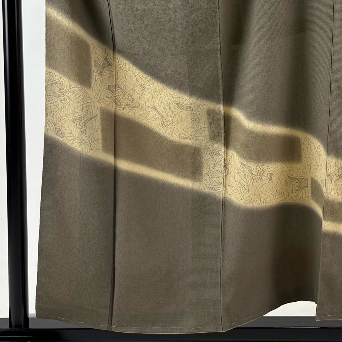 【美品】 訪問着 身丈157.5cm 裄丈61.5cm S 袷 花 葉柄 染め分け ぼかし 灰緑 正絹 秀品