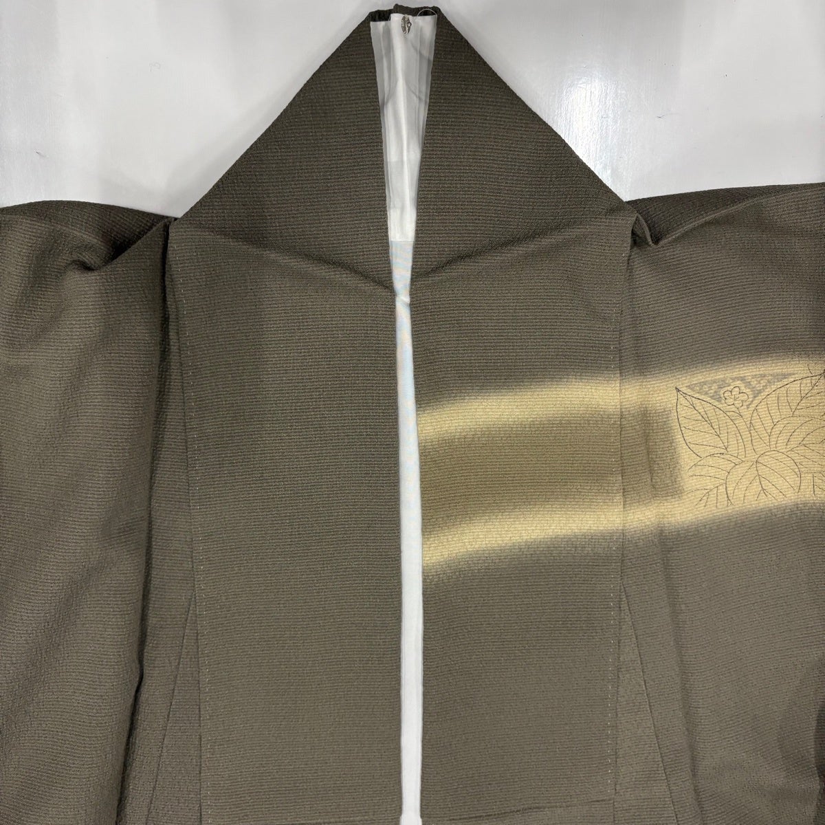 【美品】 訪問着 身丈169.5cm 裄丈65.5cm M 袷 紬地 枝梅 枝花 絞り 金糸 灰茶 正絹 秀品