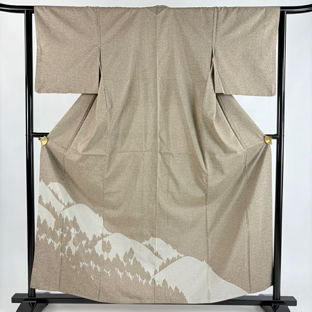 訪問着 身丈152cm 裄丈62.5cm S 袷 風景 山 ぼかし 灰色 正絹 秀品