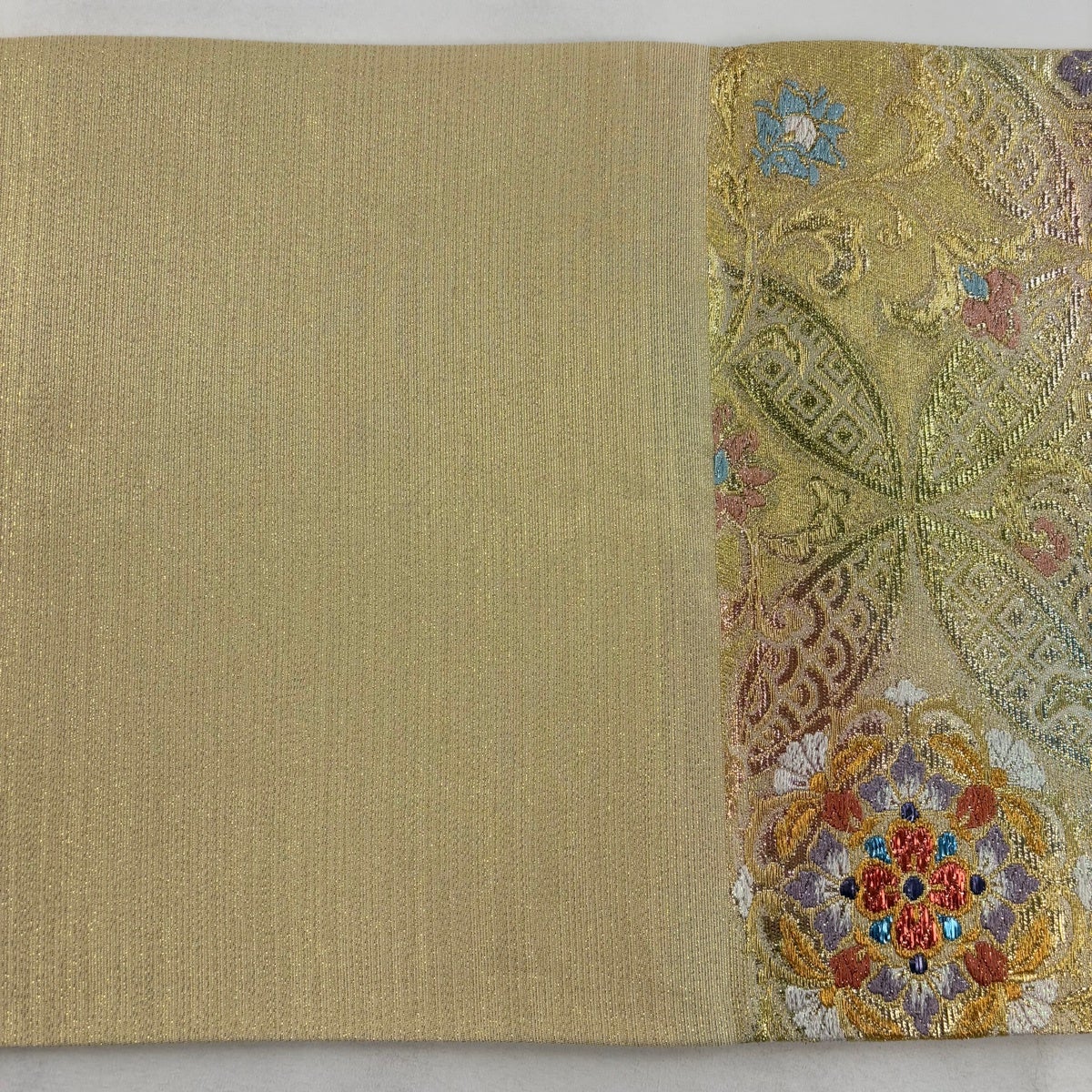 【美品】 袋帯 秀品 華文 草花 金銀糸 箔 ベージュ 六通 正絹