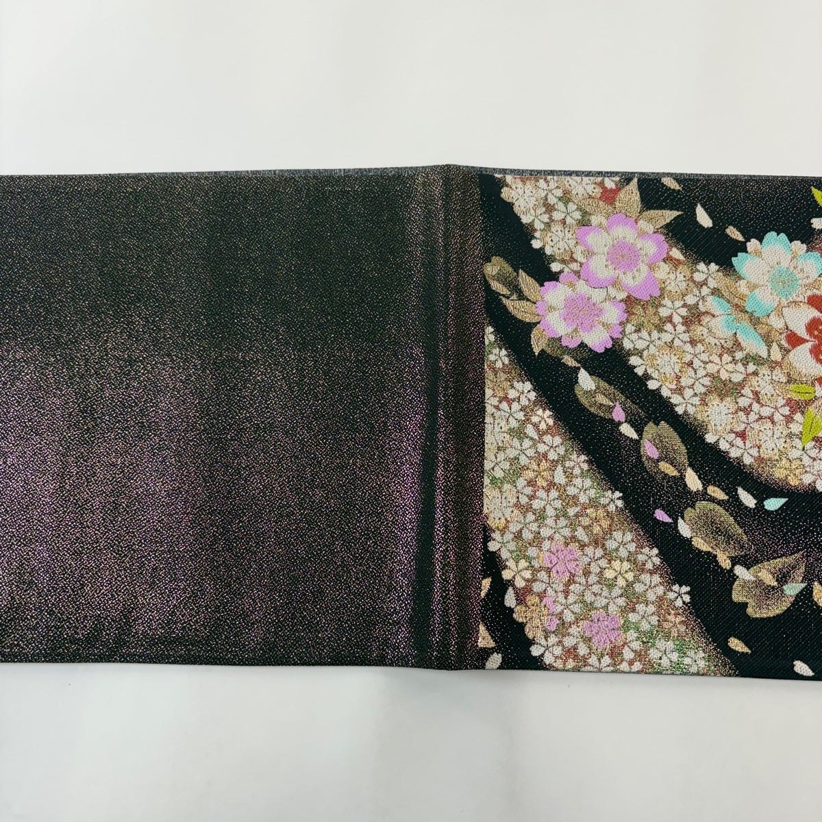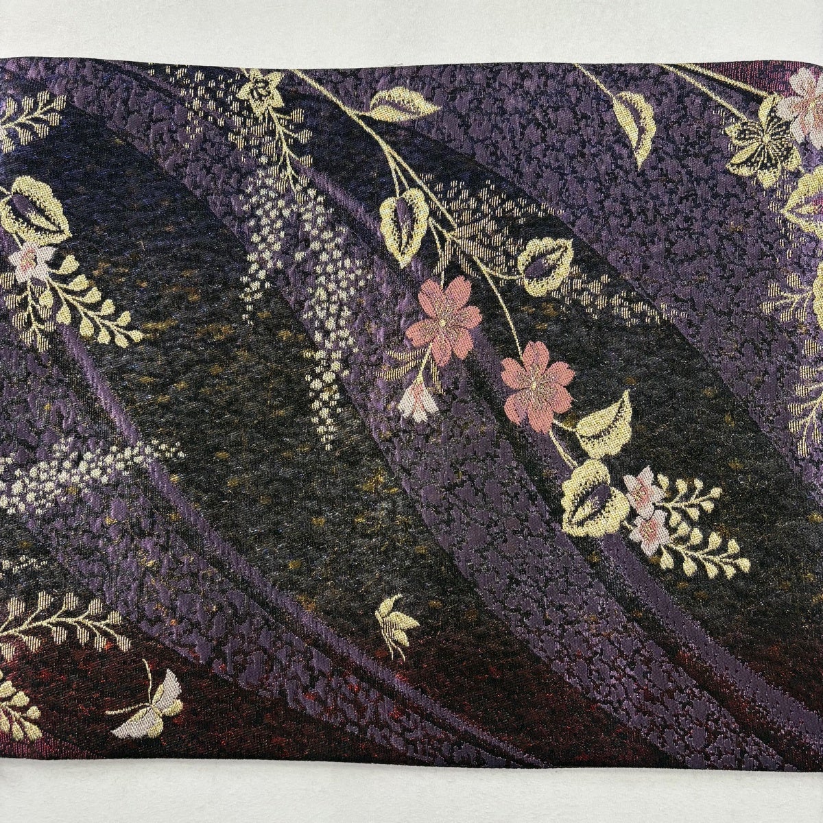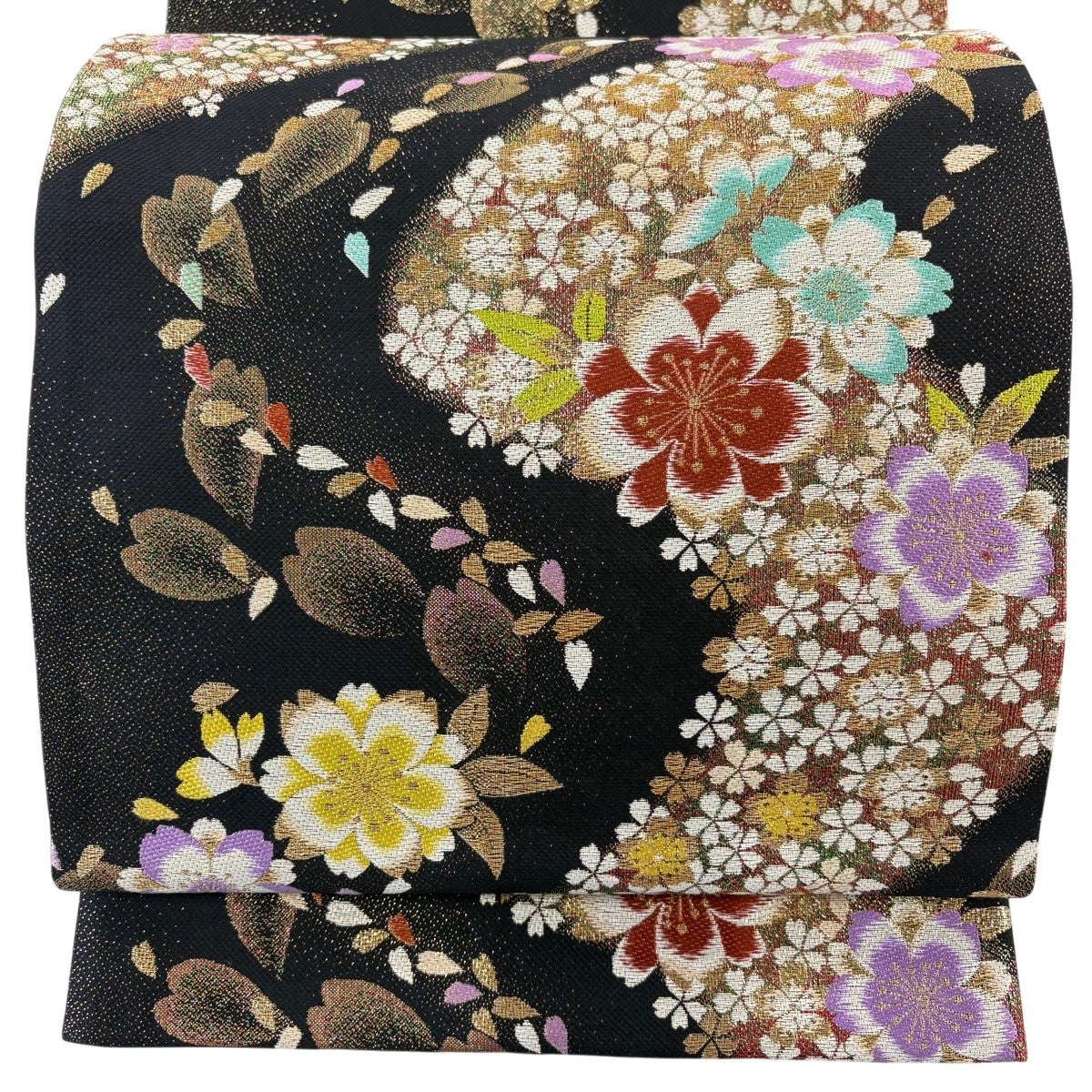 【美品】 袋帯 秀品 桜 藤 金糸 箔 黒 六通 正絹