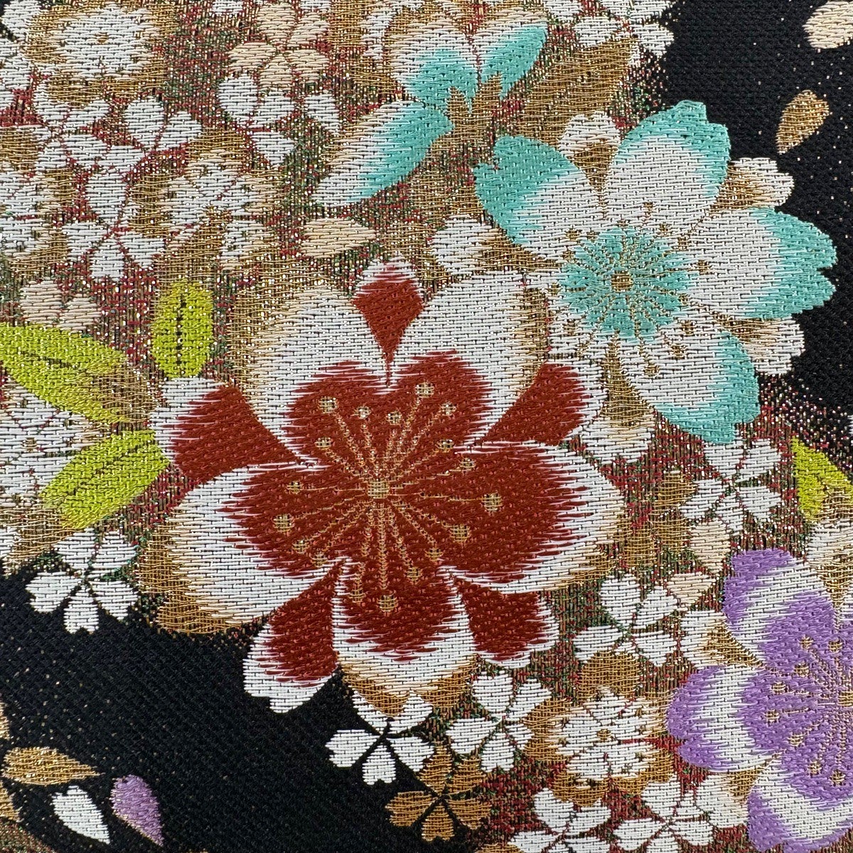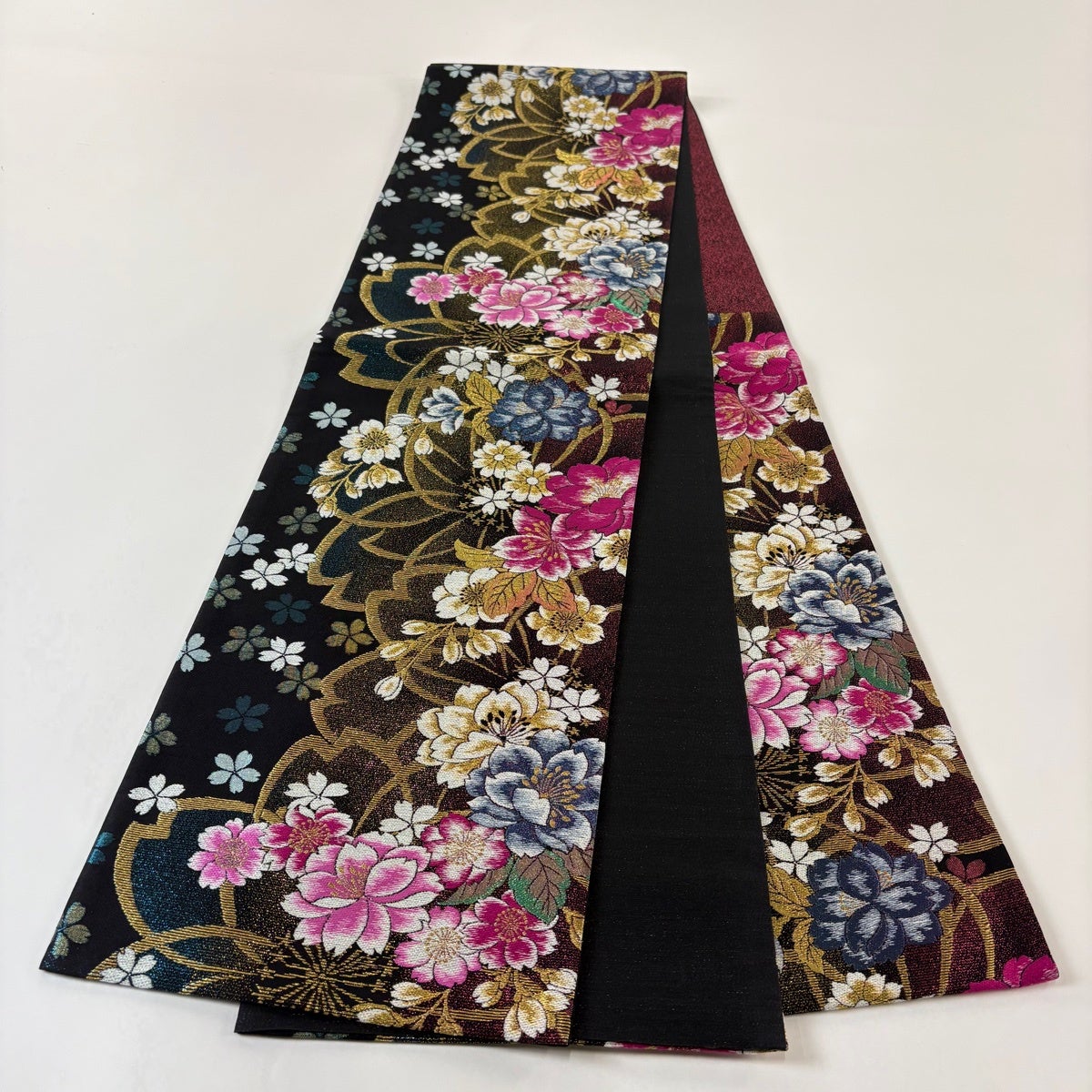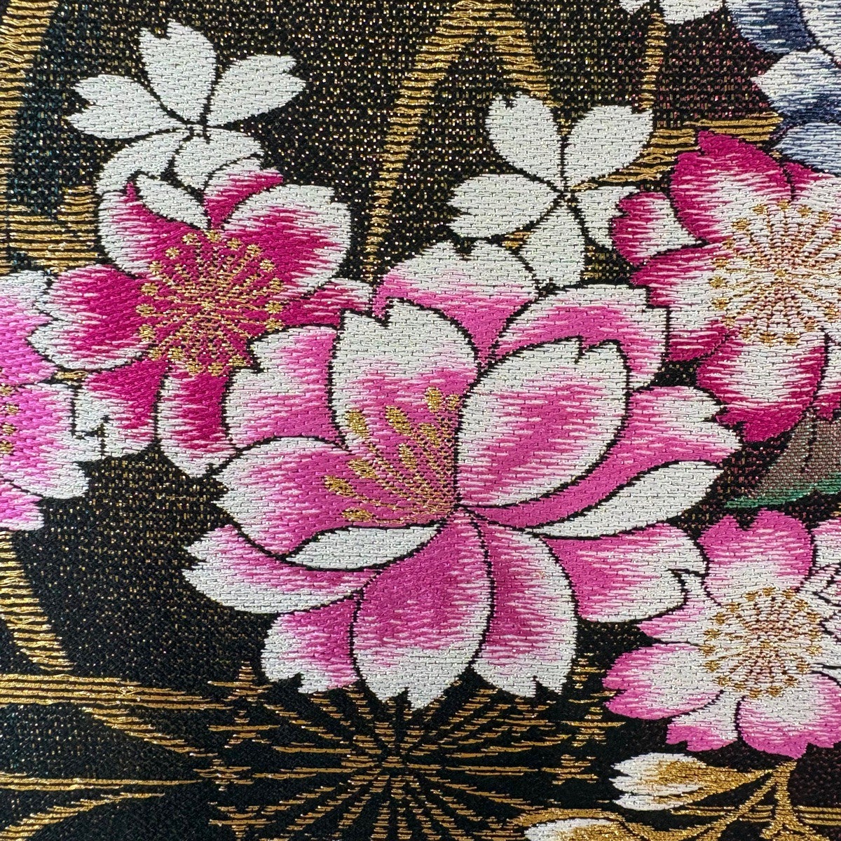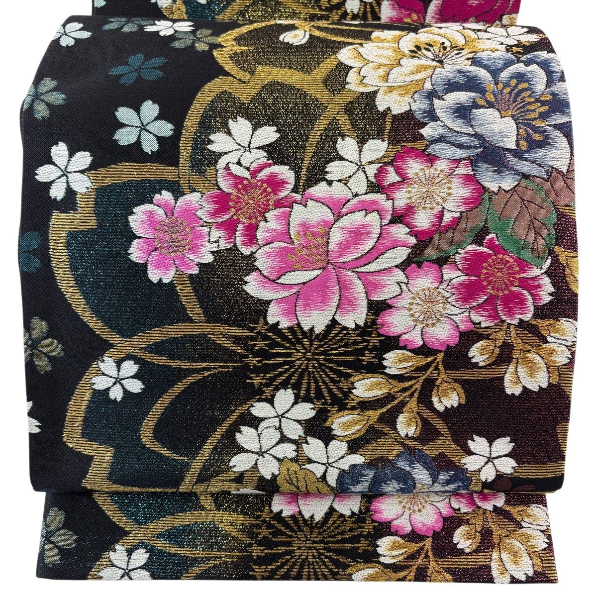 【美品】 袋帯 秀品 桜 藤 金糸 箔 黒 六通 正絹