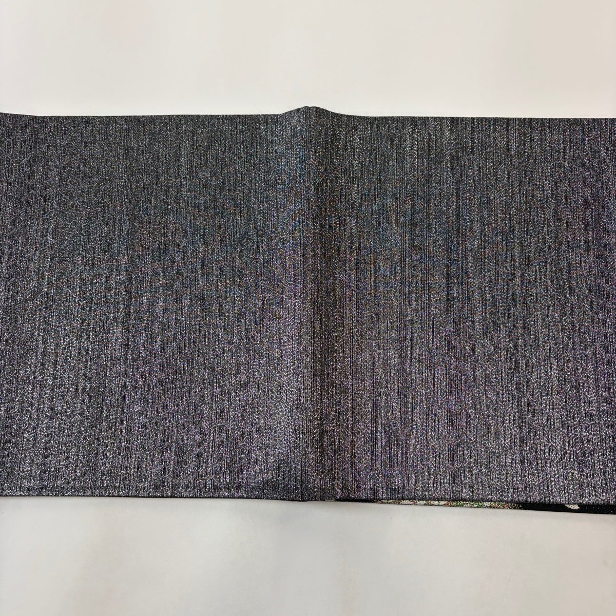 【美品】 袋帯 秀品 夏帯 草花 銀糸 墨色 全通 正絹