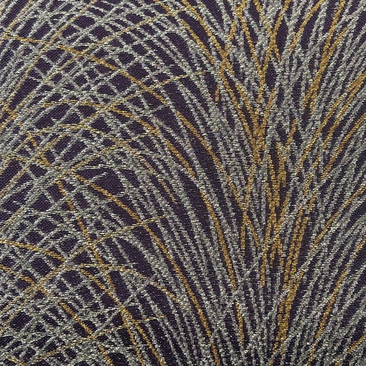 【美品】 袋帯 秀品 関西仕立て 菱 縞 金糸 焦茶色 六通 正絹
