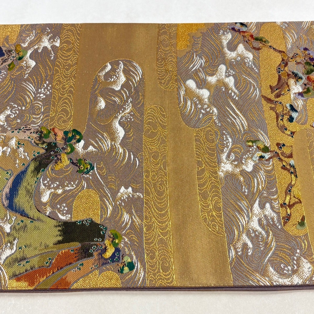 【美品】 袋帯 秀品 落款あり 流水 箔 金色 全通 正絹
