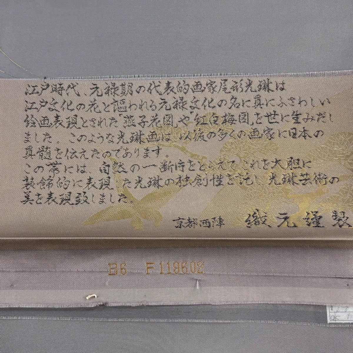 【美品】 袋帯 秀品 琳派彩苑紋 花鳥 金糸 箔 金色 六通 正絹