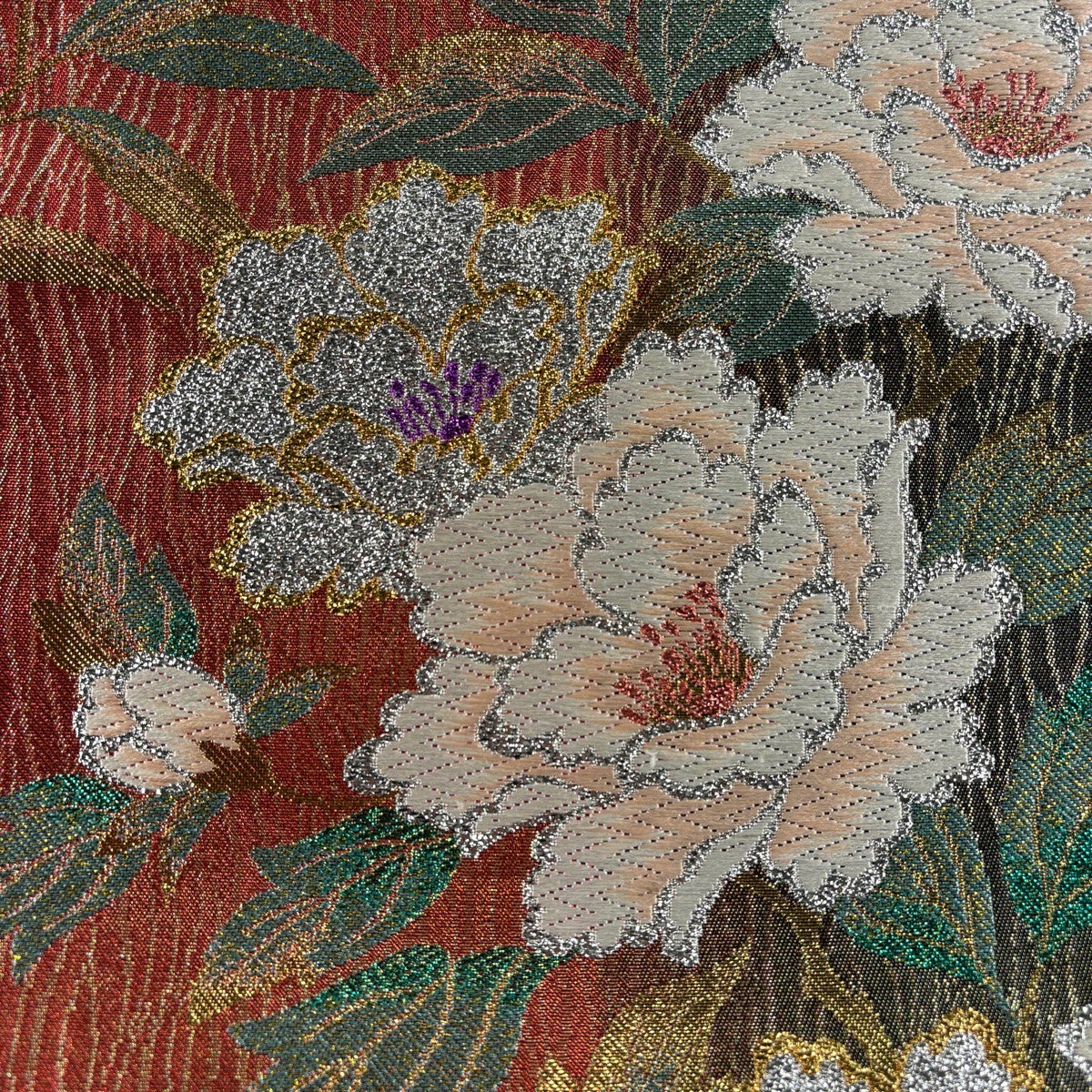 【美品】 袋帯 秀品 草花 菊 金銀糸 箔 赤黒 六通 正絹