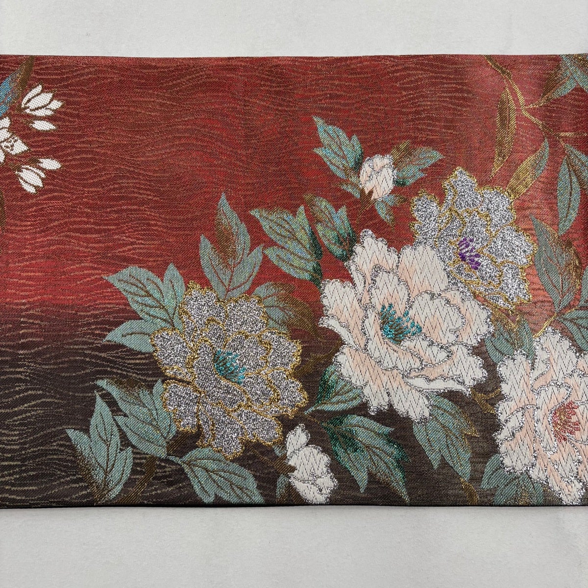 【美品】 袋帯 逸品 ますいわ屋 ヱ霞 花唐草 茶色 お太鼓柄 正絹