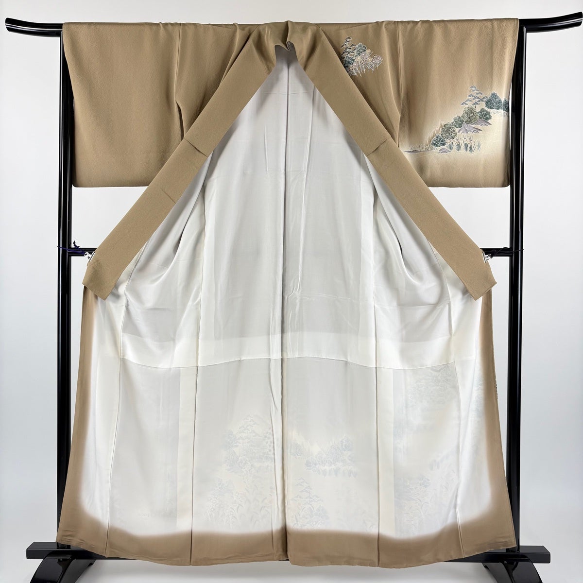 訪問着 身丈172cm 裄丈67cm M 袷 雪輪 草花 金糸 金彩 薄茶色 正絹 名品