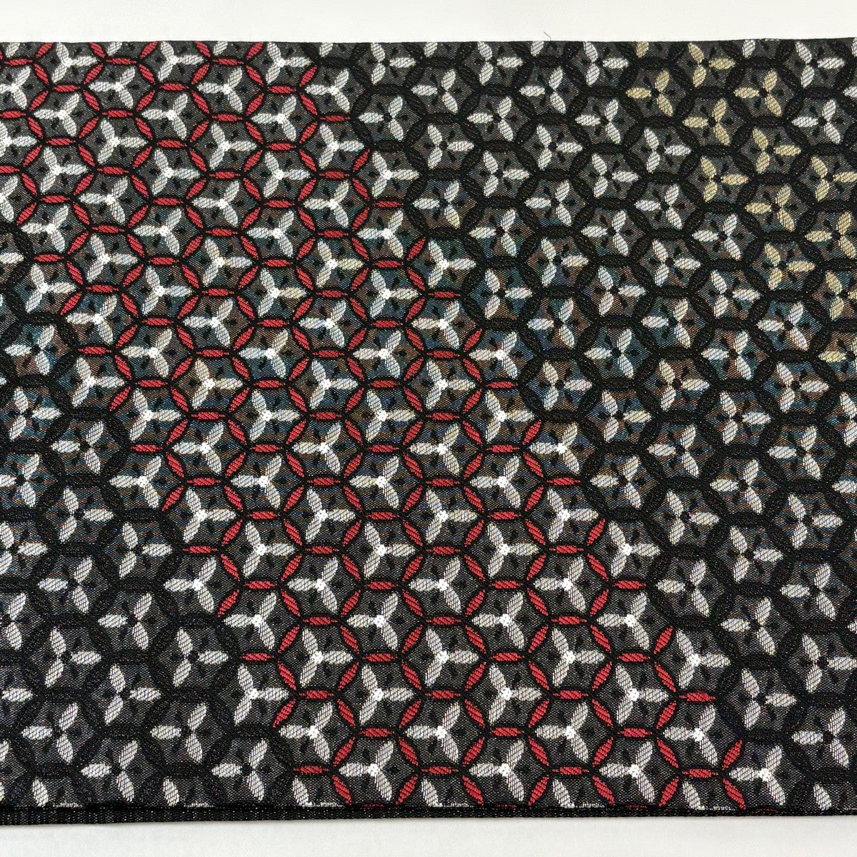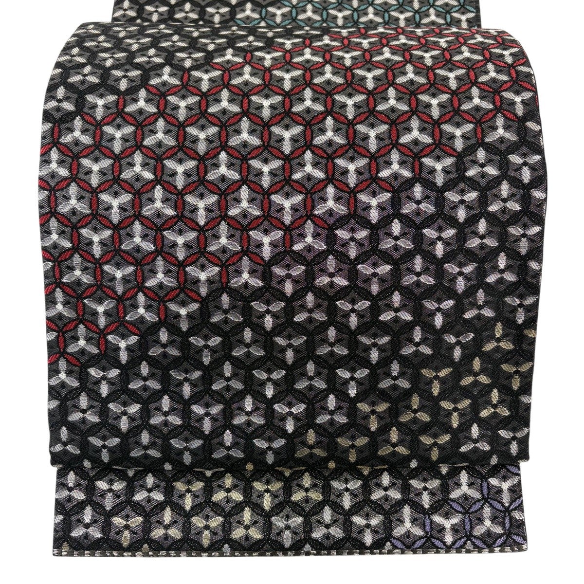 【美品】 袋帯 名品 関西仕立て 亀甲 銀糸 箔 黒 六通 正絹