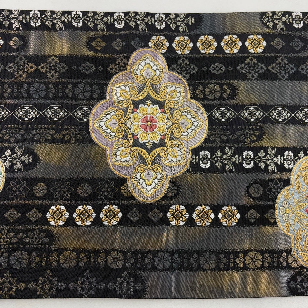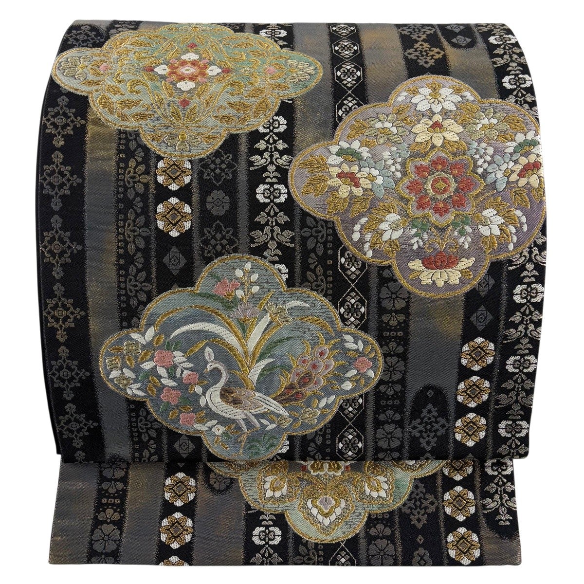 【美品】 袋帯 秀品 花丸文 和楽器 箔 金糸 金色 全通 正絹