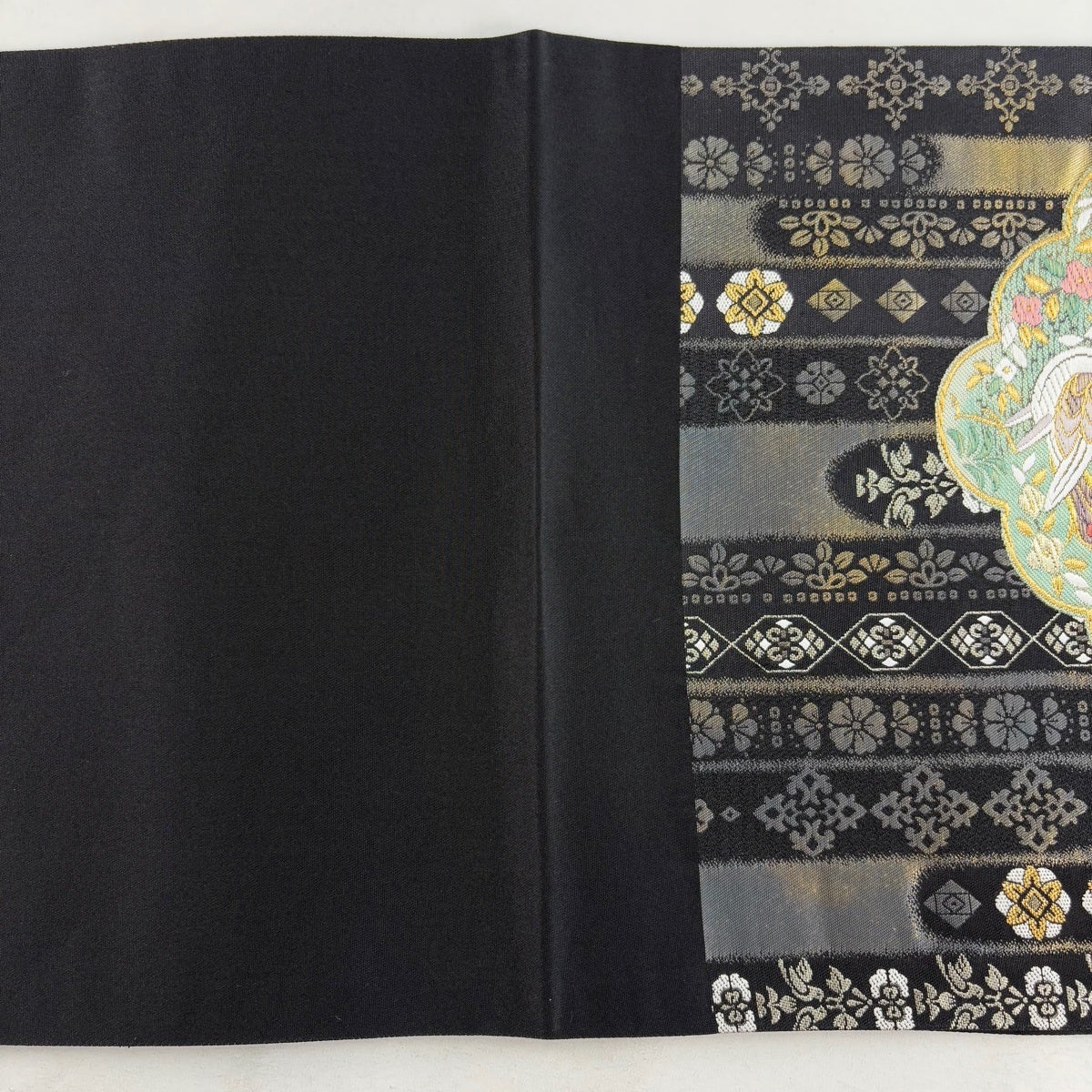 【美品】 袋帯 秀品 唐草 花 金糸 唐織 黒 お太鼓柄 正絹