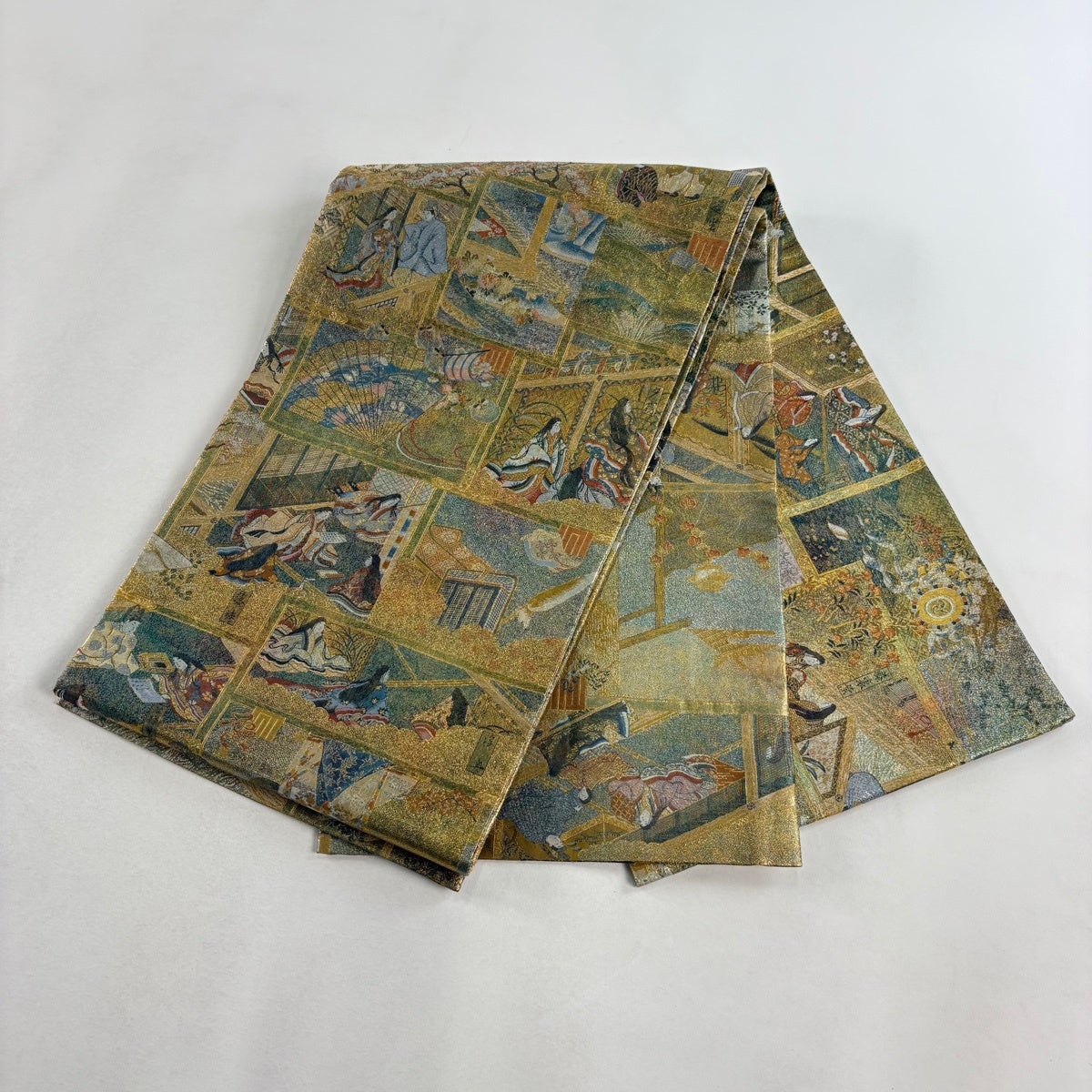 【美品】 袋帯 秀品 華文 向かい鳥 金銀糸 箔 薄緑 六通 正絹