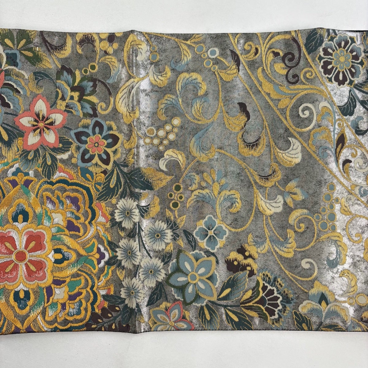 【美品】 袋帯 秀品 辻が花 金銀糸 箔 灰色 六通 正絹