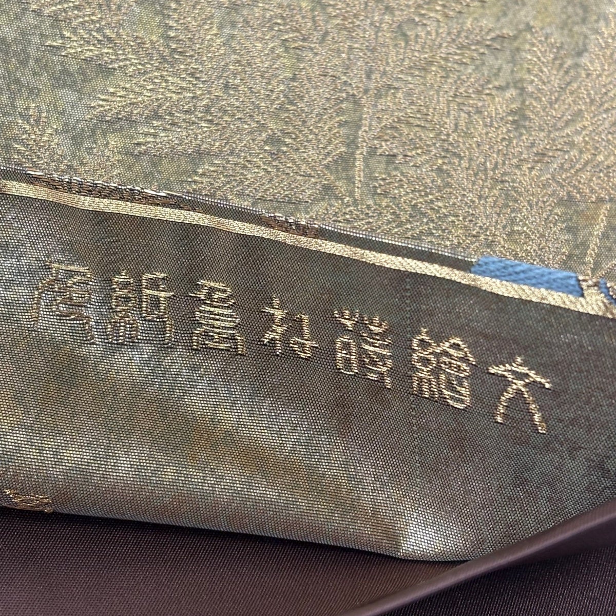 【美品】 袋帯 秀品 彩麗芳華文 金糸 箔 青灰色 六通 正絹
