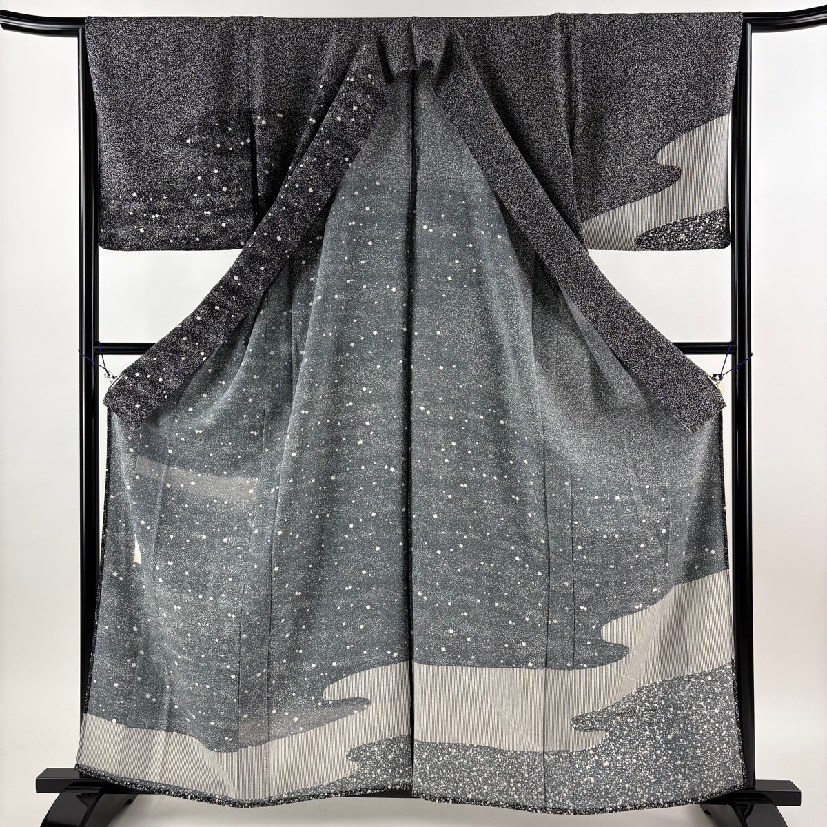 訪問着 身丈156cm 裄丈63cm S 袷 桜 霞 金銀彩 ぼかし 灰色 正絹 名品