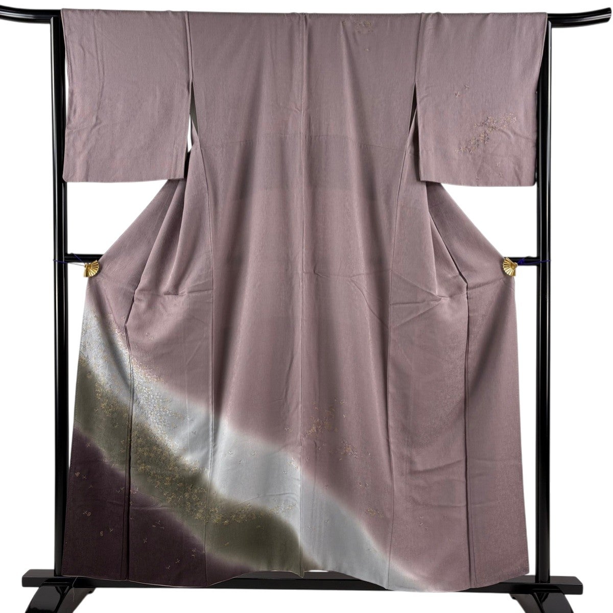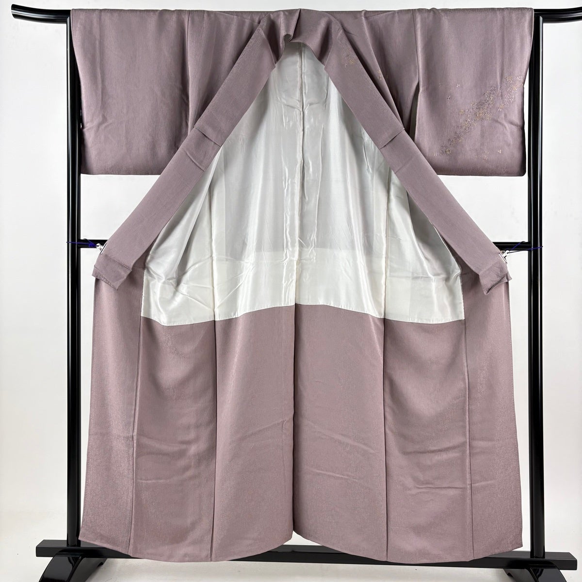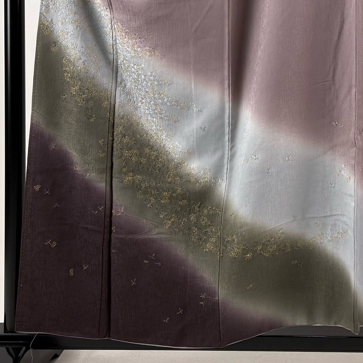 訪問着 身丈157cm 裄丈65cm M 袷 枝花 流水 刺繍 金糸 灰紫 正絹 秀品