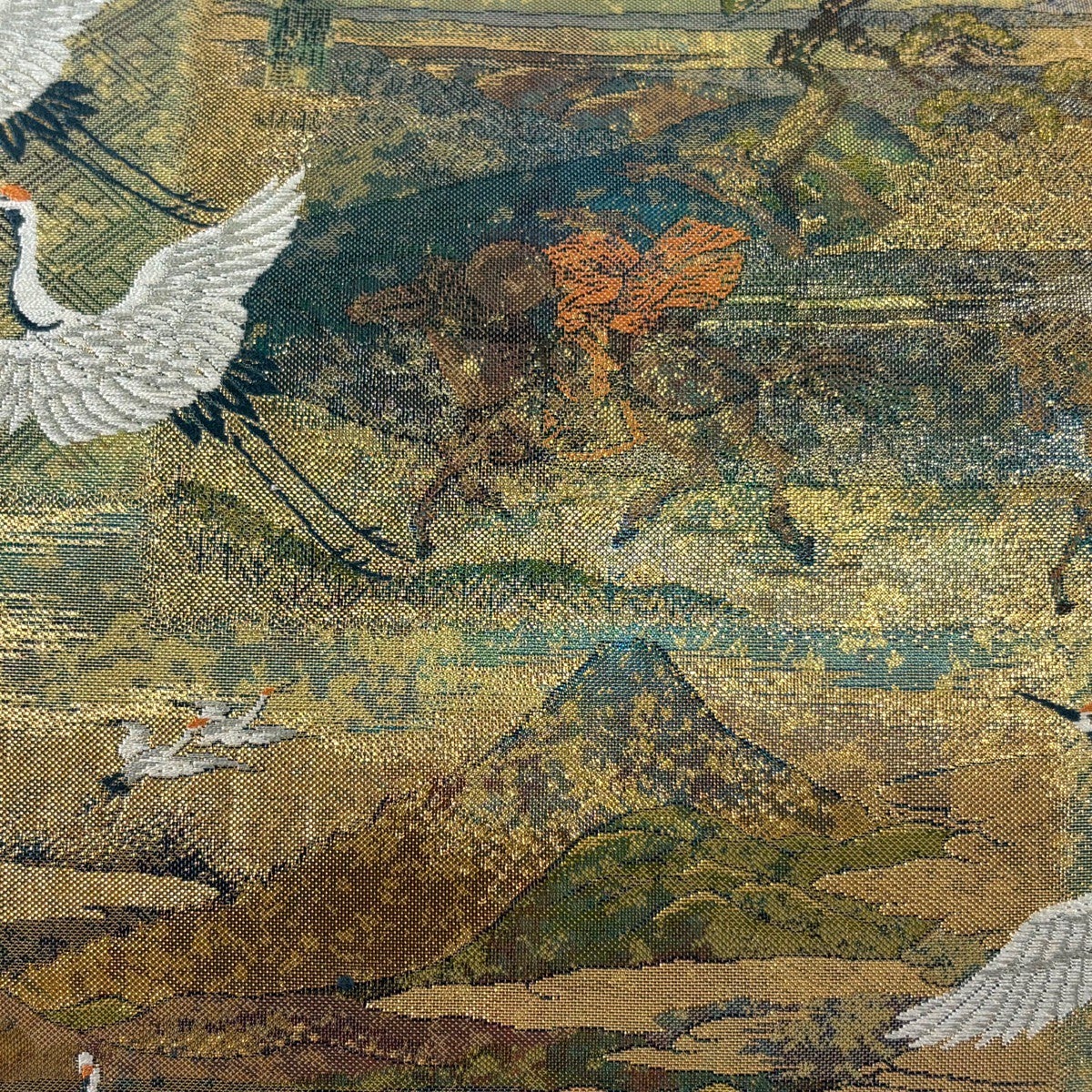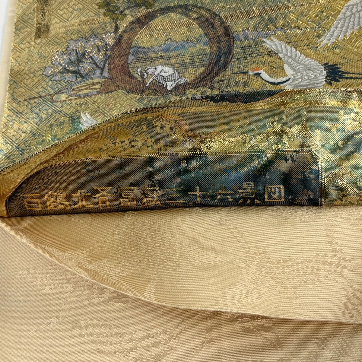 袋帯 秀品 関西仕立て 花鳥 巻物 箔 金色 六通 正絹