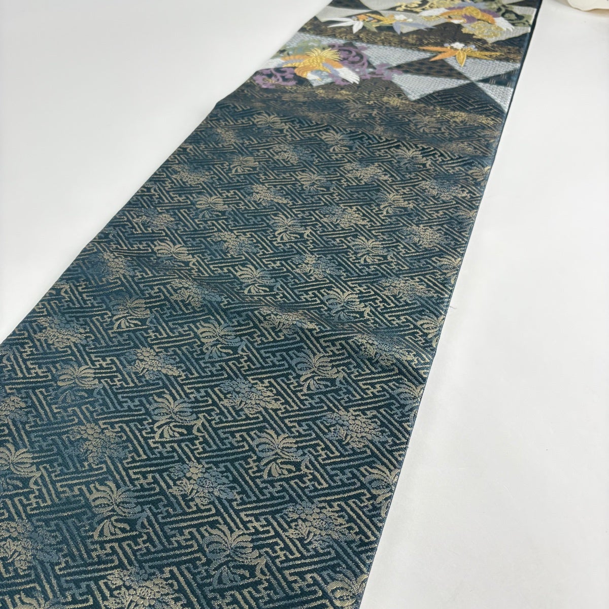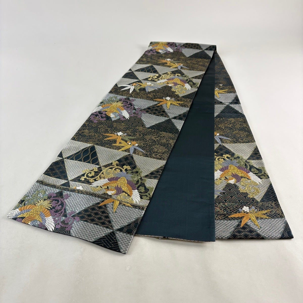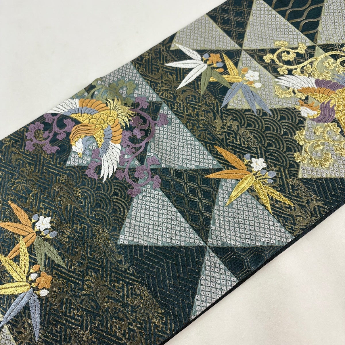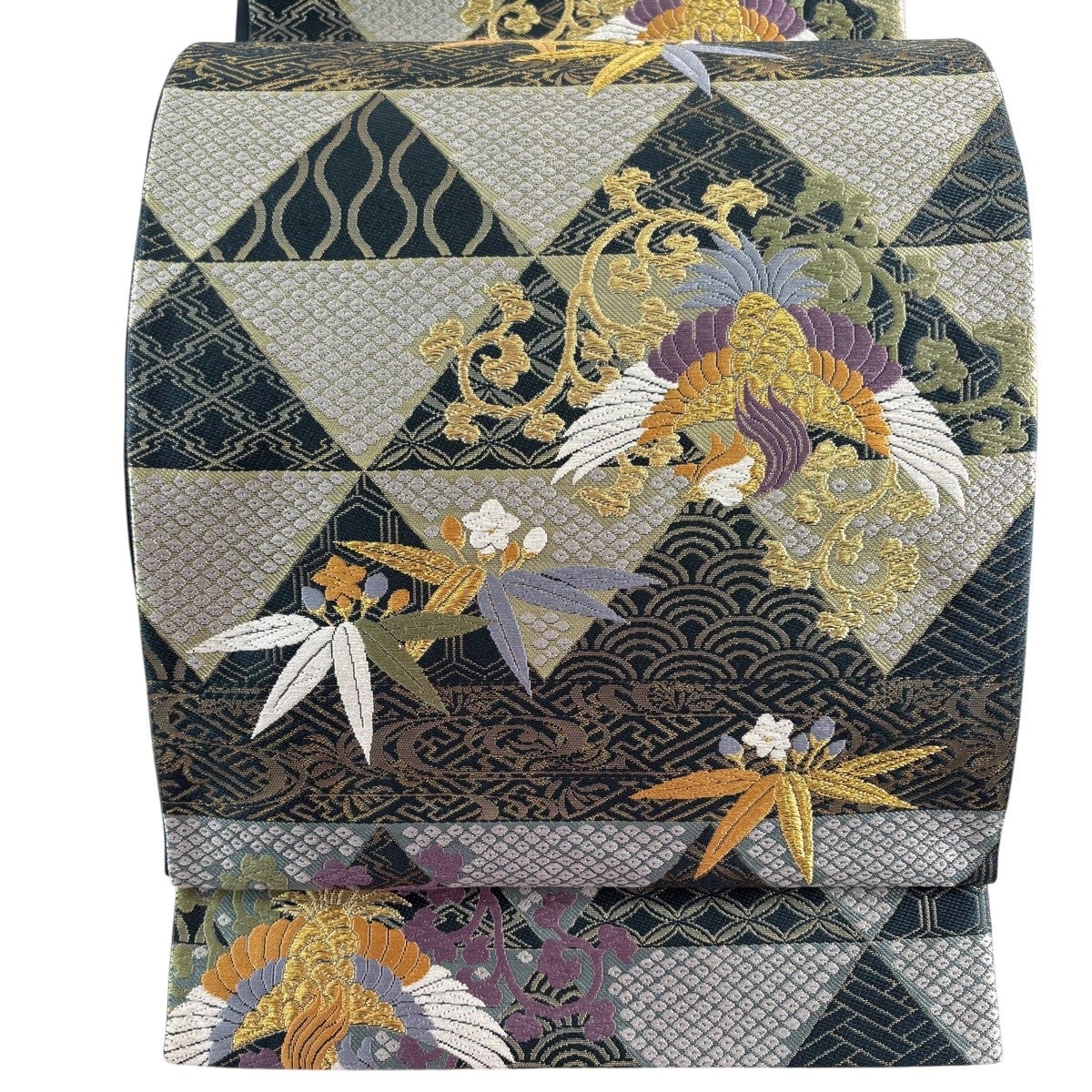 袋帯 秀品 鳳凰 有職文様 金糸 箔 青緑 六通 正絹